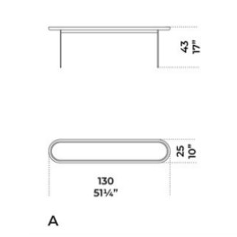In appoggio sul top in legno, piano in cristallo 12mm molato a mezzo toro nella finitura esclusiva “Rosso Marte”. Disponibile anche piano in marmo 20mm Calacatta Vagli Oro lucido naturale oppure Ceppo di Gré spazzolato. Il tavolino “A” viene realizzato esclusivamente con piano in legno ribassato.