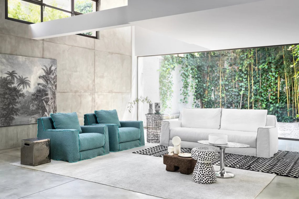 Famiglia di tavolini-pouf in cemento GFRC bianco o grigio antracite, Inout 47/48/49 si distinguono per la loro essenzialità: disponibili in diverse altezze hanno una struttura a totem asimmetrica, con piano rotondo, per dare vita a prodotti di sofisticata essenzialità.