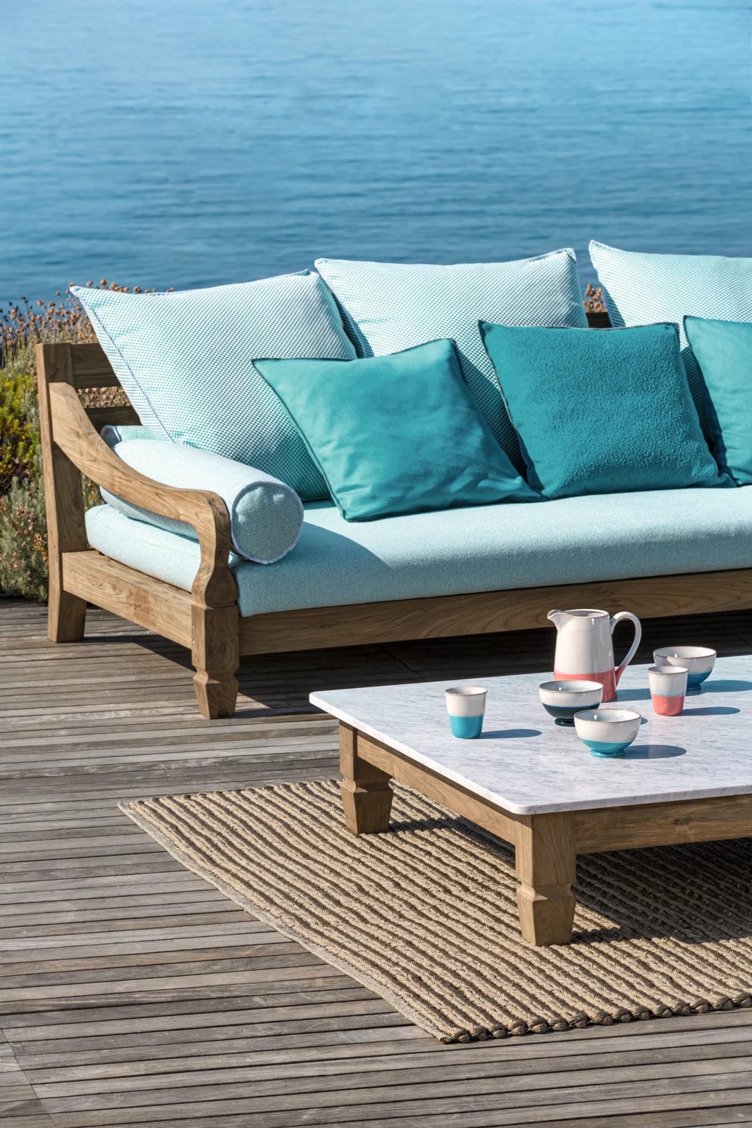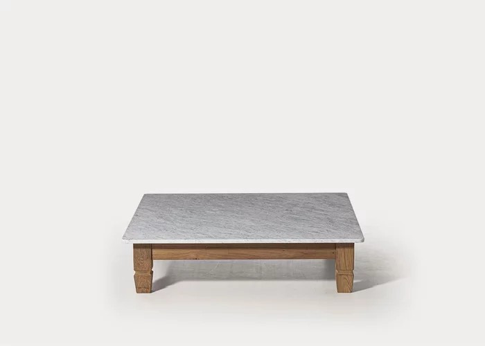Famiglia di tavolini bassi dalla forma quadrata o rettangolare in stile coloniale di ispirazione esotica, Jeko 11/14 hanno gambe e struttura realizzati in ECOTeak, materiale proveniente dal riutilizzo di travi ed elementi in teak recuperati, riparati con legno riciclato, assemblati e levigati per evidenziare le venature originali. Vengono impreziositi da un top in marmo bianco Carrara, così da creare un prodotto che gioca sui contrasti visivi dei due materiali diversi.