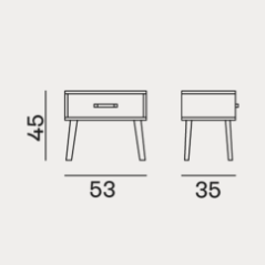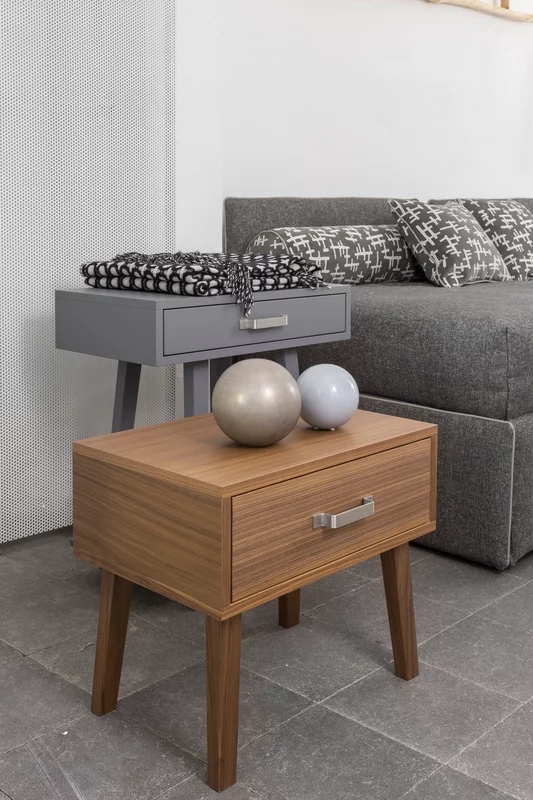 Comodino in noce Canaletto con un cassetto, maniglia in acciaio satinato. è realizzato in legno massello di noce naturale, nero, bianco, grigio, oceano o tortora ed è adatto per riempire gli spazi accanto al letto, un contenitore dai volumi compatti in cui riporre oggetti di vario genere.