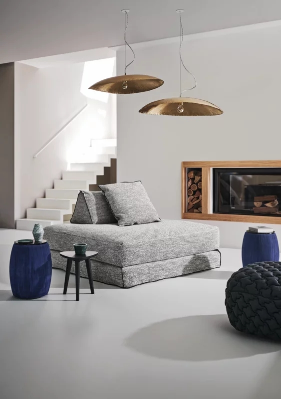 Dal forte impatto decorativo, la famiglia di lampade BRASS sfrutta la duttilità dell’ottone e la sua capacità di impreziosire gli interni con riflessi luminosi caldi e dorati. Lampade a sospensione, hanno una forma delicata di grande appeal visivo: un leggero disco di ottone con una curvatura leggera nella versione più piccola o molto accentuata in quella più grande che fluttua nell’aria riflettendo la luce in maniera poetica e suggestiva. Possono essere utilizzate singolarmente o abbinate tra di loro per un effetto ancora più suggestivo e scenografico.