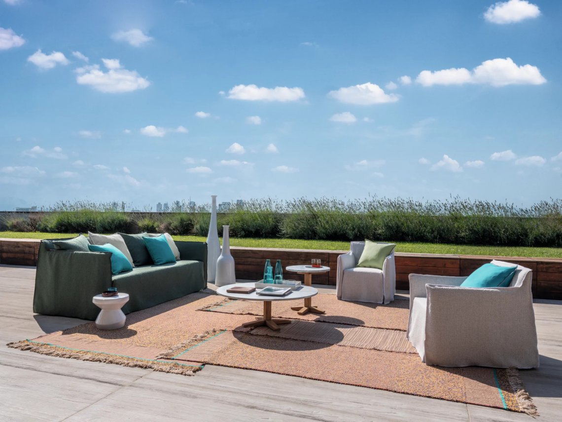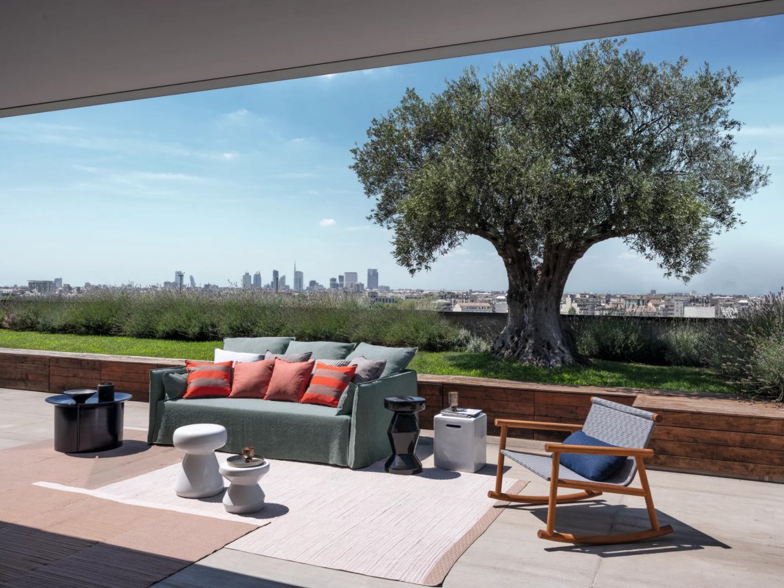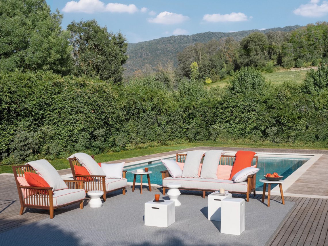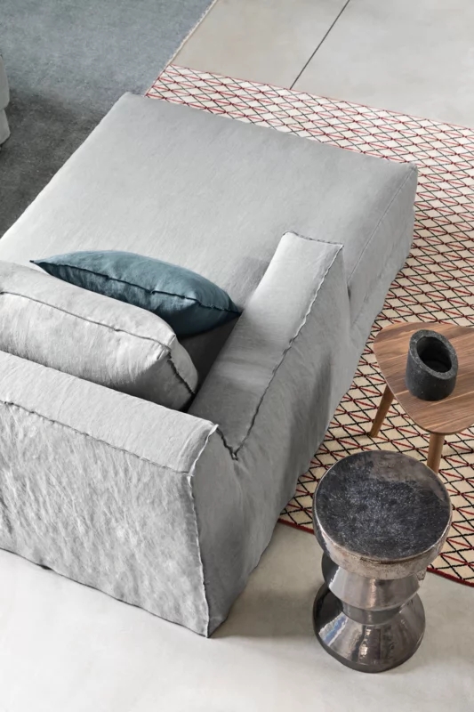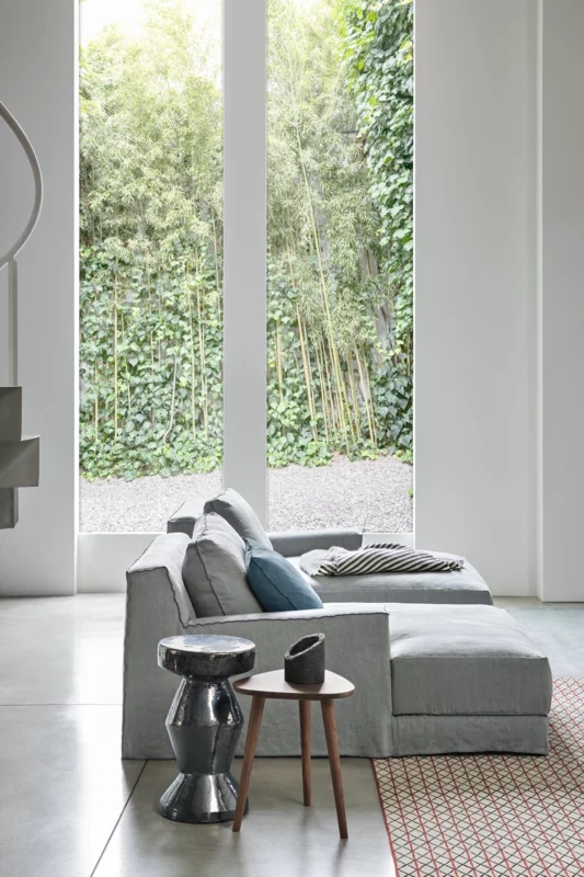 Famiglia di tavolini-pouf in cemento GFRC bianco o grigio antracite, Inout 47/48/49 si distinguono per la loro essenzialità: disponibili in diverse altezze hanno una struttura a totem asimmetrica, con piano rotondo, per dare vita a prodotti di sofisticata essenzialità.