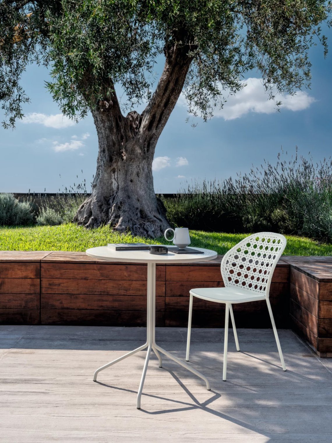 Il piacere del convivio all’aria aperta declinato in tante forme diverse: la famiglia di tavoli Brise suggerisce nuovi modi di pensare la tavola outdoor, che sia per tanti ospiti o per pochi intimi. Le basi dei tavoli dining sono in tubolare di acciaio inox nei colori Oxido, Slate o Pearl. Piani disponibili in lamiera forata zincata nei colori Oxido, Slate o Pearl, o in cemento con decoro nei colori grigio o bianco.