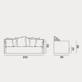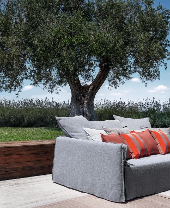 Famiglia di divani imbottiti e sfoderabili, Ghost Out 10/12/16 vantano una seduta comoda ed avvolgente che si sviluppa attorno ad una leggera scocca dai volumi essenziali. Ideati per resistere all’acqua e alla luce solare e per mantenere nel tempo la loro forma e la loro estetica, sono disponibili in diverse dimensioni, da due o da tre posti e con differenti profondità di seduta. Sono caratterizzati da una struttura geometrica in cui la morbidezza è accentuata da cuscini volanti. Caratteristica principale è il rivestimento: una housse oversize il cui profilo è sottolineato dalle cuciture a vista, per svestirsi con facilità e assumere un’immagine ogni volta diversa.