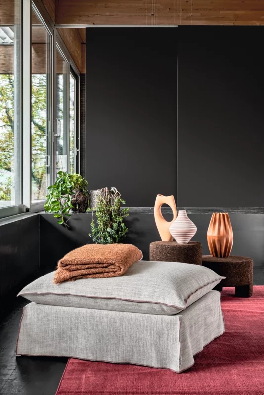 La famiglia di pouf Ghost ha forme geometriche e dimensioni consistenti e strutturate. Disponibili con struttura imbottita in poliuretano espanso a quote differenziate oppure in polistirolo, i pouf Ghost hanno come caratteristica principale il rivestimento sfoderabile, una housse oversize il cui profilo è sottolineato dalle cuciture a vista, che permette ai prodotti di svestirsi e rivestirsi in un baleno. Si tratta di un progetto tessile che cambia facilmente volto, permettendo di passare da un look formale ad uno informale con facilità e velocità.