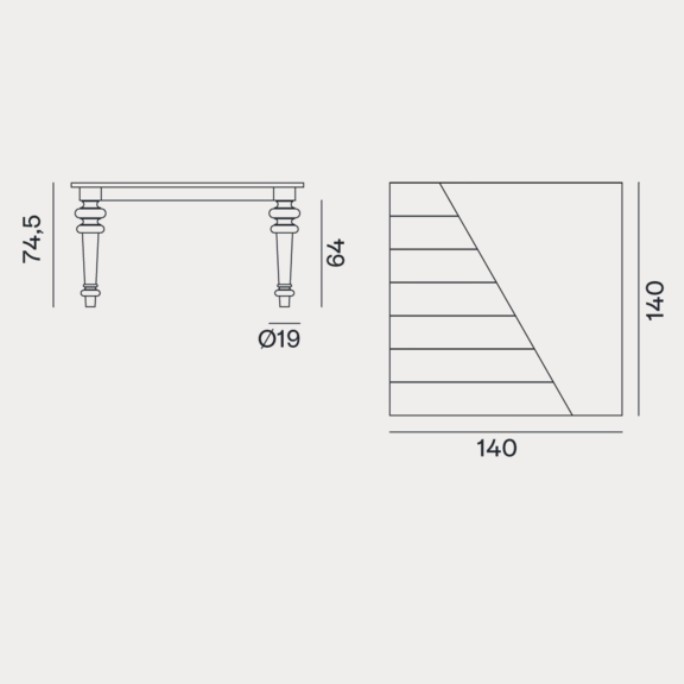 Animo vintage e design contemporaneo caratterizzano la famiglia di tavoli Gray 32/33/34/35. Disponibili in diverse dimensioni con piano quadrato o rettangolare, uniscono materiali diversi che si combinano per dare vita a molteplici combinazioni. Al piano a doghe impiallacciate di noce o rovere, marmo bianco Carrara o lamiera di ferro cerata, si uniscono quattro gambe in noce o rovere, in porcellana bianca, marmo bianco Carrara o in fusione di alluminio lucidato, con elegante tripla tornitura. Finiture legno disponibili: noce Canaletto verniciato naturale, rovere sbiancato o rovere laccato bianco, grigio, nero, oceano o tortora.