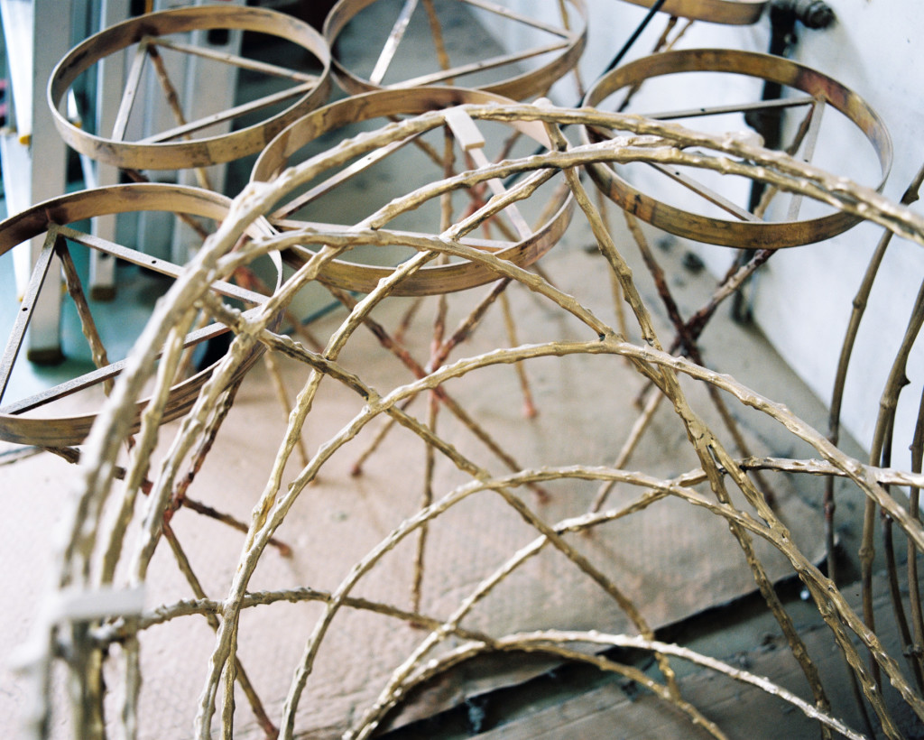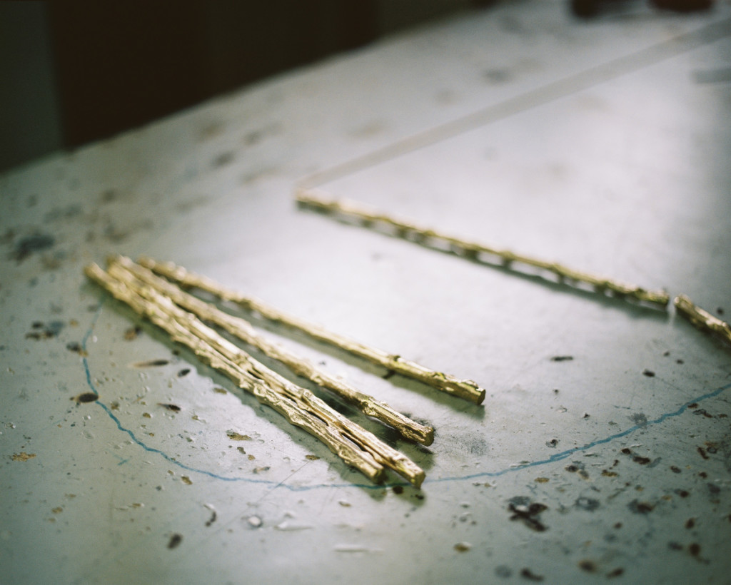 Eternalized rosebush branches, molded in brass casting, give a perennial feel to this elegant table. The bottom structure is assembled by hand by artisans, while the minimalistic top offers a soothing and quiet balance to this piece.