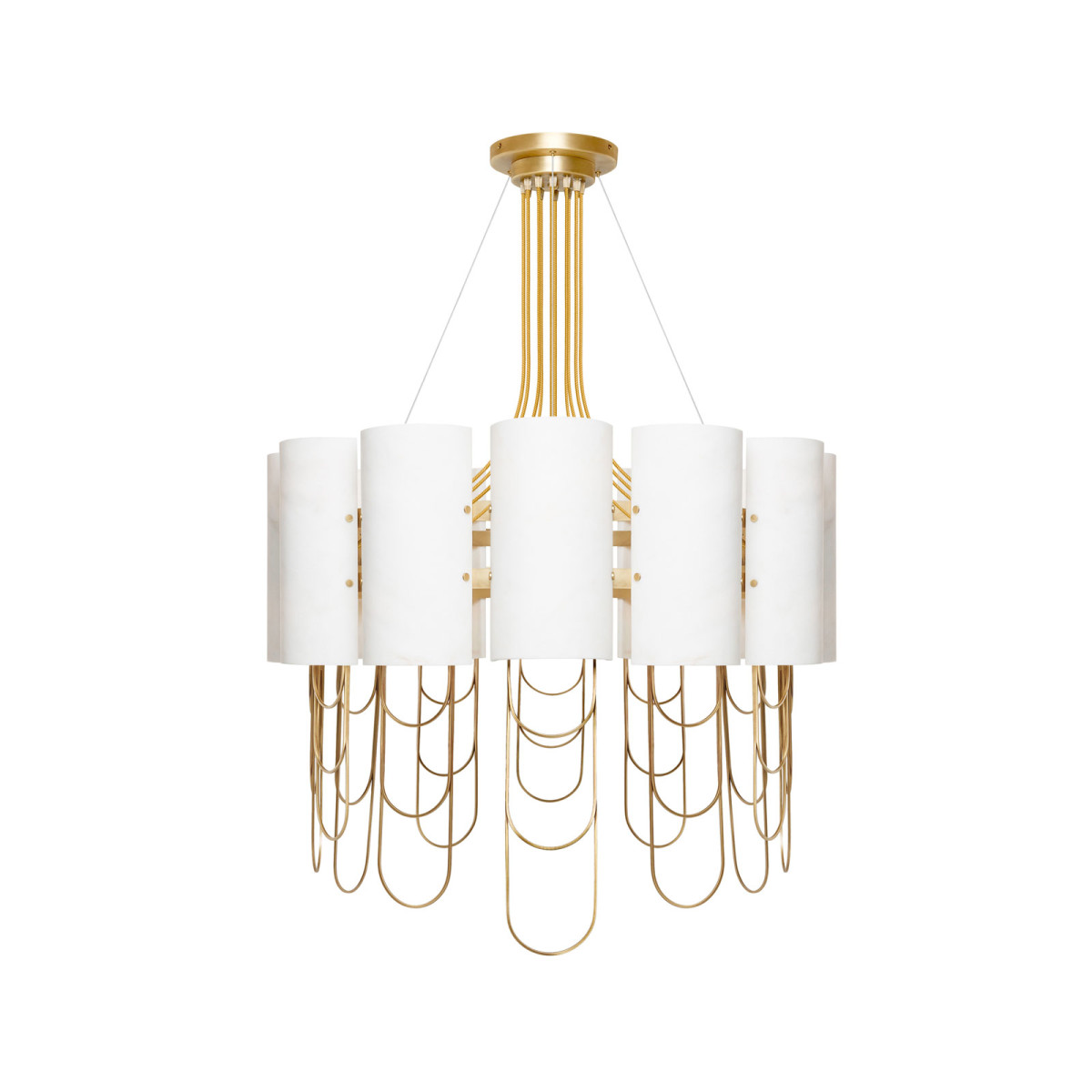 The Niagara has an evocative silhouette reminiscent of water drops. This fine handcrafted piece provides warm and cosy light through its marble shades.