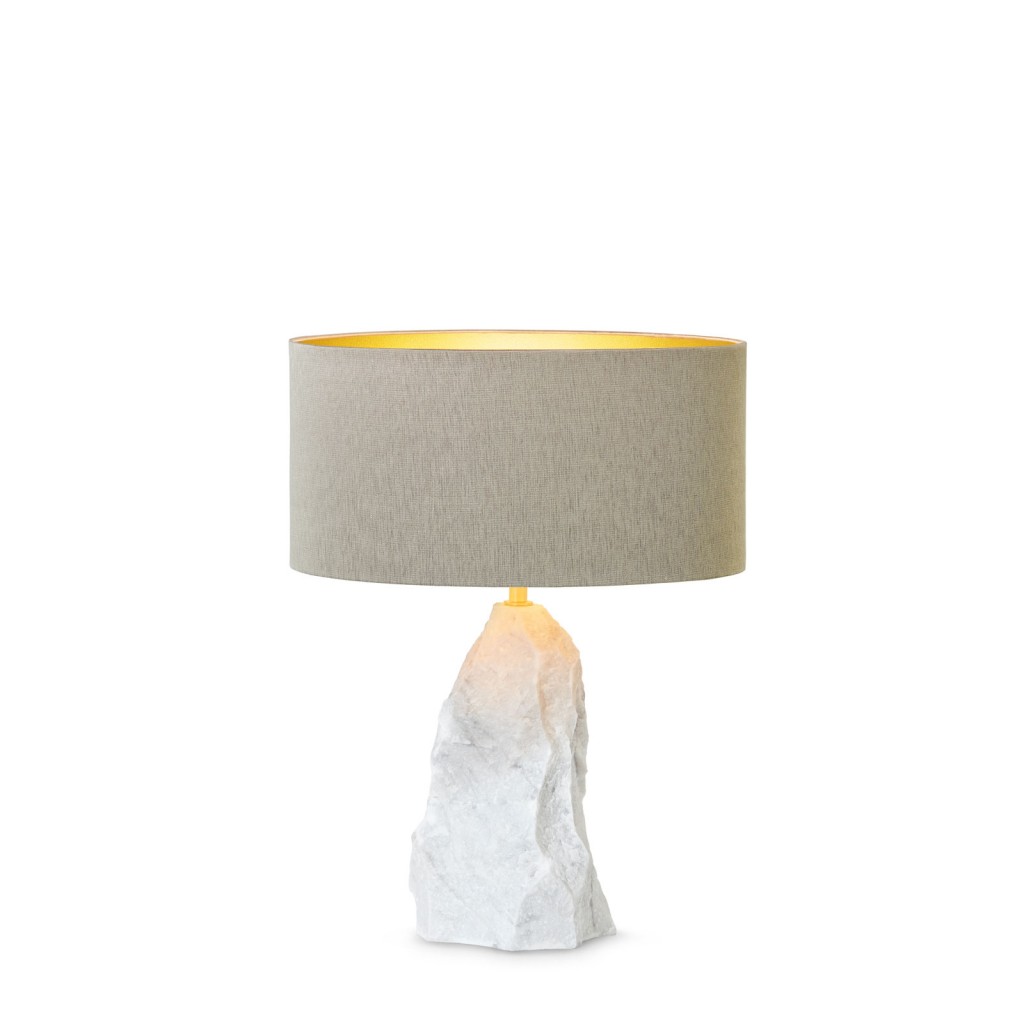 The Pico table lamp encapsulates the raw beauty of mountain stone, using techniques to convey the erosions and hewn features formed over a long battle against nature’s forces. The circular lampshade, available in various finishings, surmounts the hand-sculpted marble, creating a truly unique piece that bears a striking resemblance to its natural counterpart.