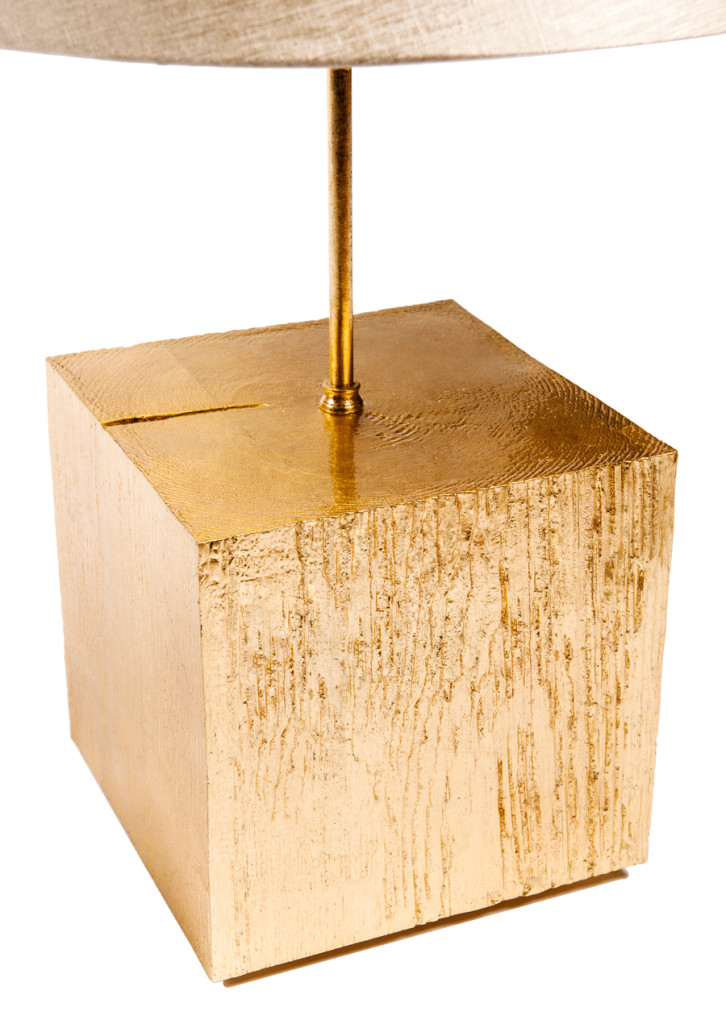 Featuring a base made of wood in brass casting mold and a fabric lampshade, the Tree Table Lamp personifies the great contrast found in Nature between raw and refined textures and materials.