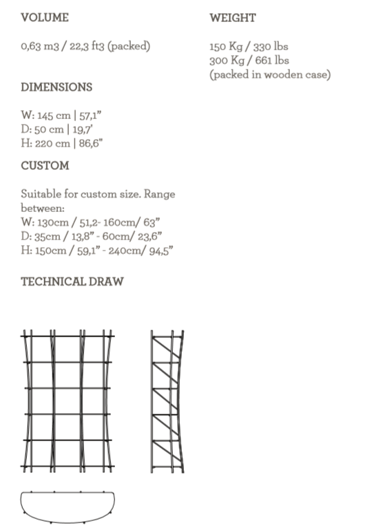 A monument to artisanal wisdom, the Flora Bookcase stands as a graceful memento of branches springing from a quiet river bank. Designed to be filled with ideas, it’s structure is made of tree branches molded in cast brass, with glass shelves that give it a profound sense of lightness.