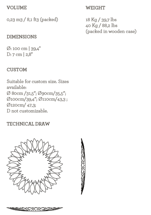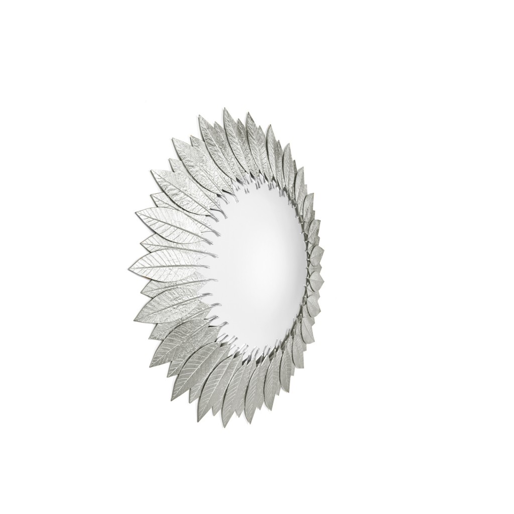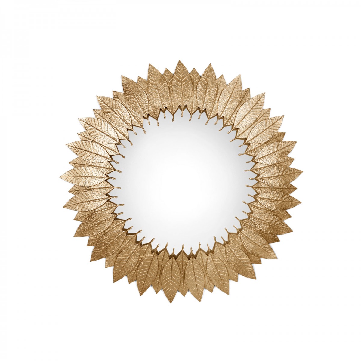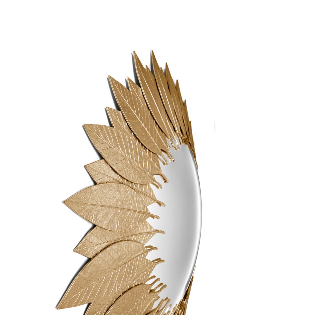 The Leaf mirrors’ golden frame, made from leaves molded in brass casting, evokes the falling of autumn leaves around a pond. The leaves are assembled by hand by artisans.