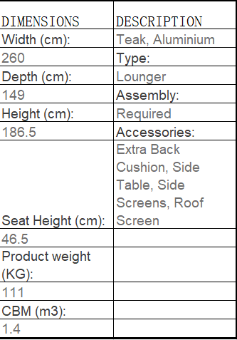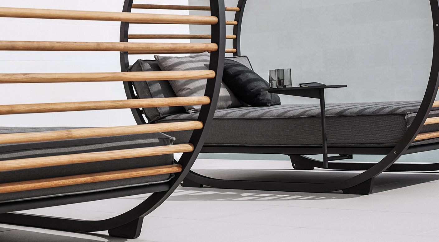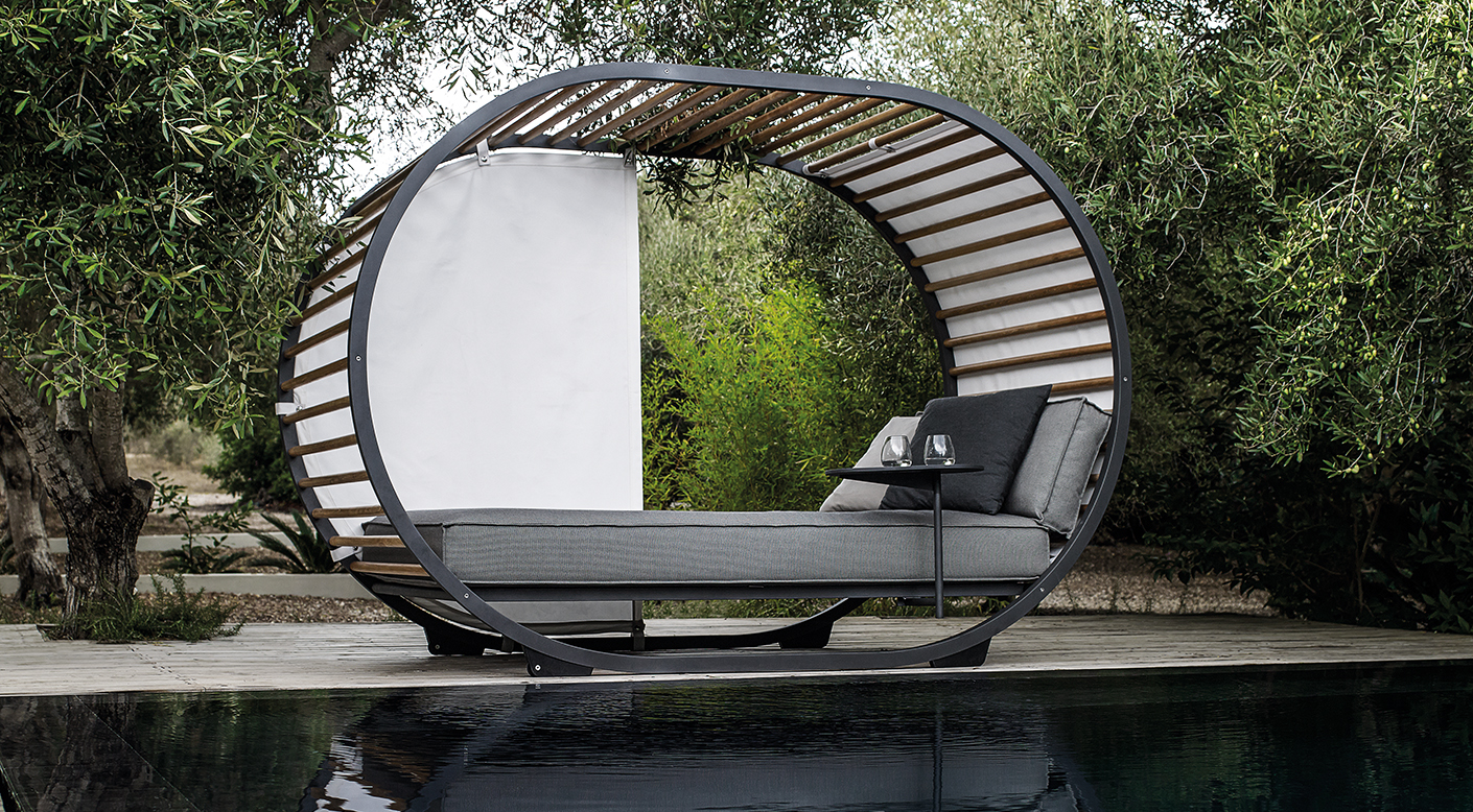 It’s all about creating defined rooms, your own private oasis in the outdoor area, but still open and exposed to the elements - with a sense of enclosure. Luxurious for one, but big enough for two, with a selection of shades, privacy can be adjusted to suit. A variety of finish and fabric options as well as an integrated side table mean you can create your very own haven.