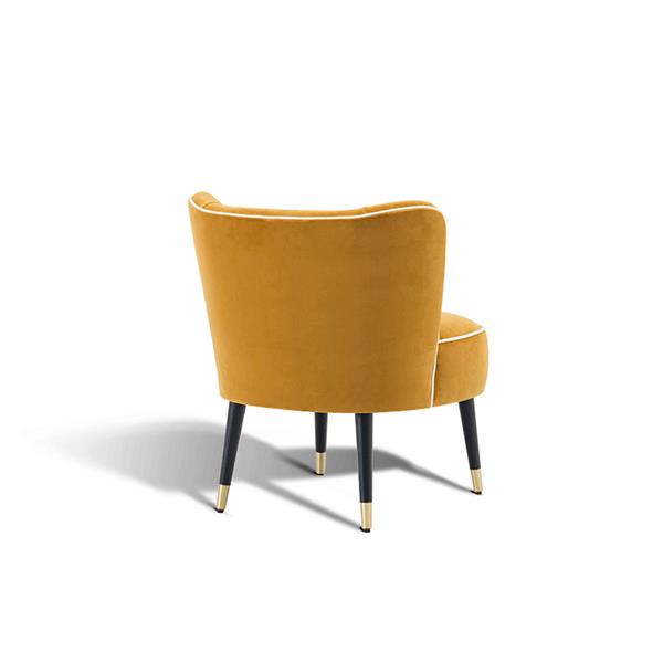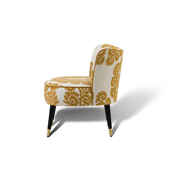 Tissi lounge chair is an elegant and comfortable piece, distinctive for its soft rounded silhouette that seem to float in midair supported by four thin legs decorated with brass legs ferrules. This item will be decorative and functional for any kind of environment, as in the bedroom, as in the entrance hall or in the living room