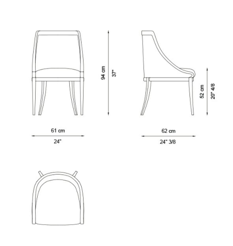 Dining chair with solid ash wood structure. Seat with elastic straps. Polyurethane foam and polyester fiber lining. Non-removable cover. Gros grain piping.