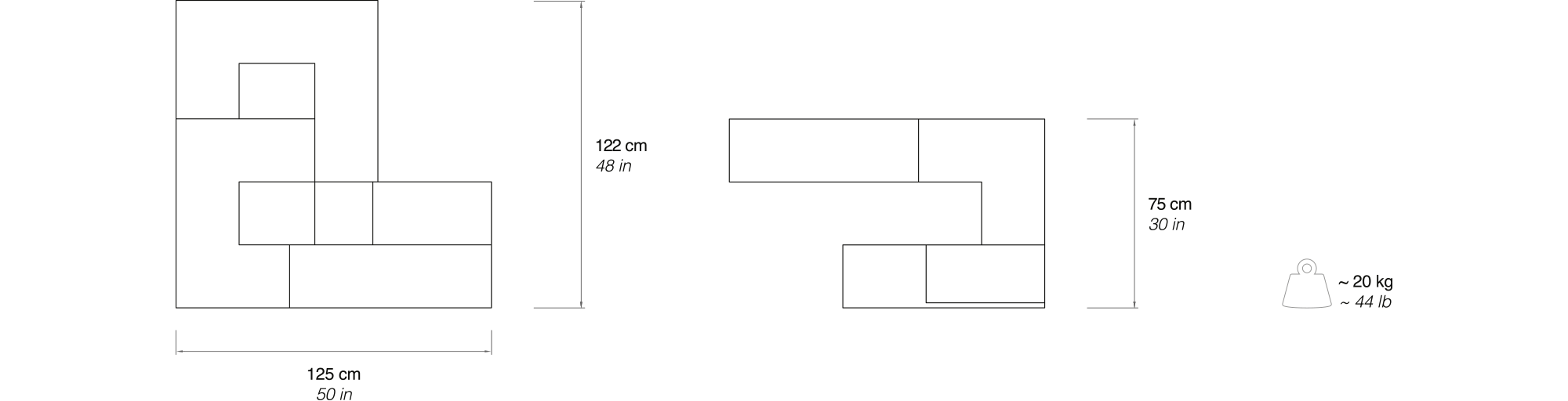 Designed by artist Kris Ruhs and inspired by weathering steel sculptures, Untitled is a modular decor item as well as a sculpture in soft polyurethane covered in Guflac - the special paint invented by the brand, thanks to which it is possible to make polyurethane foam look like leather, making it resistant but maintaining its softness.