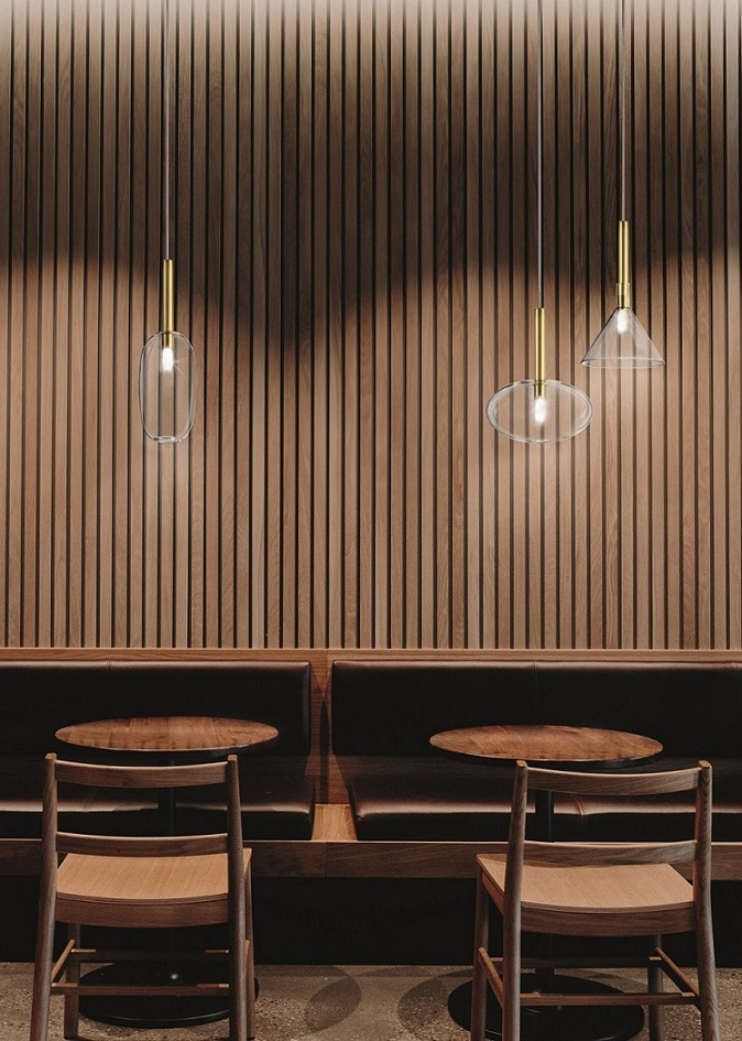 News 2019: finitura in ottone naturale con sfere di vetro ramato (ONR).