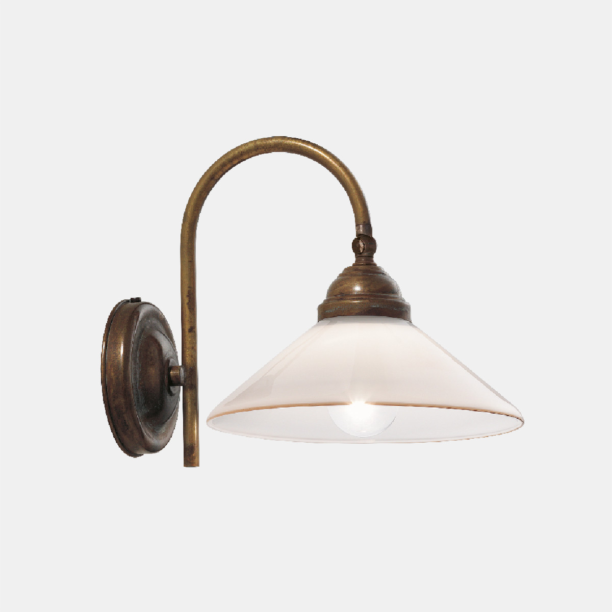 Linguaggio country internazionale e tradizione millenaria del vetro di Murano, grande espressione del made in Italy, si fondono alla perfezione nella collezione Country. Prodotte in ottone e vetro soffiato bianco, queste lampade sono peculiarmente caratterizzate dal bordo ribruciato marrone.