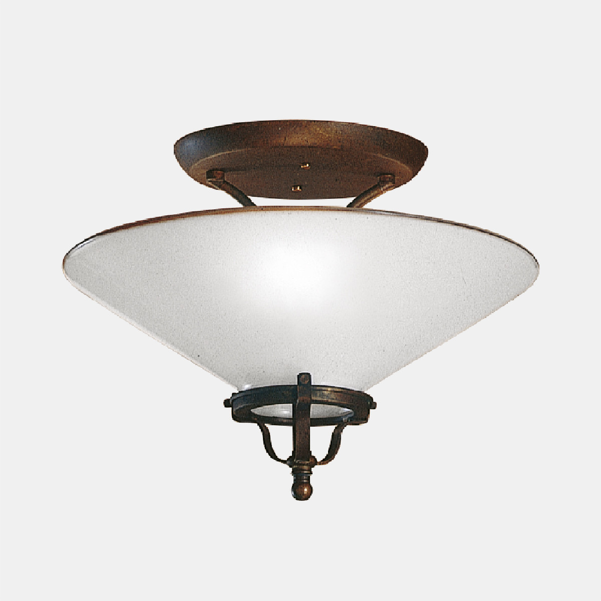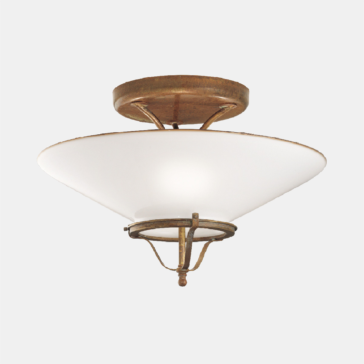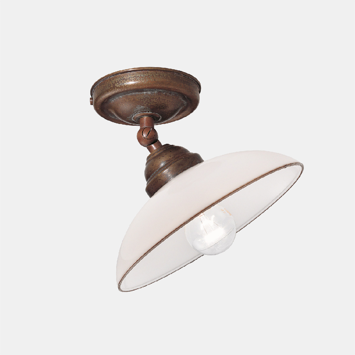 Linguaggio country internazionale e tradizione millenaria del vetro di Murano, grande espressione del made in Italy, si fondono alla perfezione nella collezione Country. Prodotte in ottone e vetro soffiato bianco, queste lampade sono peculiarmente caratterizzate dal bordo ribruciato marrone.