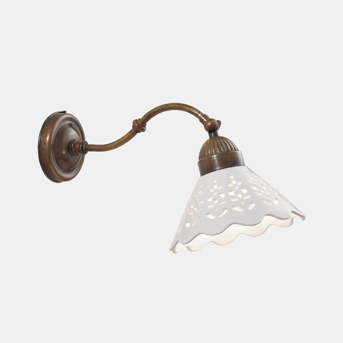 I ricami sapientemente traforati sulle preziose ceramiche di Bassano conferiscono un grande valore estetico alle lampade della collezione Fiori di Pizzo, emblemi di un classicismo rivisitato in chiave moderna. La ricercata lavorazione consente, in fase di illuminazione, la creazione di giochi di luce sulle pareti proiettando fiori e decori.