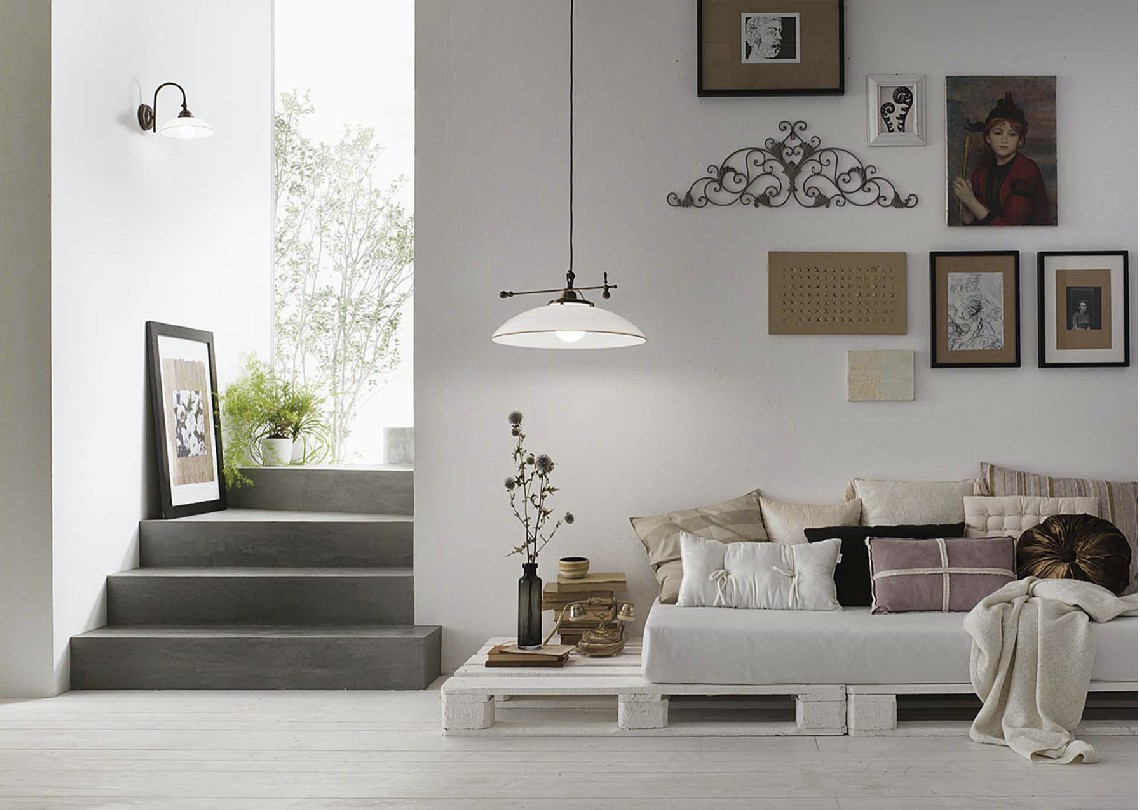 Linguaggio country internazionale e tradizione millenaria del vetro di Murano, grande espressione del made in Italy, si fondono alla perfezione nella collezione Country. Prodotte in ottone e vetro soffiato bianco, queste lampade sono peculiarmente caratterizzate dal bordo ribruciato marrone.