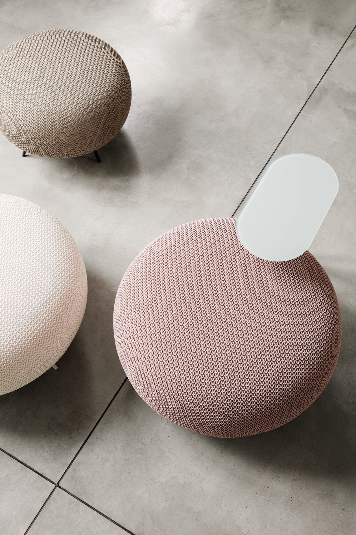 Gioia is a soft and generous ottoman, excellent for integrating the temporary presence of other guests in areas of conversation or rest, or to provide a supporting point. The structure is composed of tubular metal feet while the soft padding is covered with fire resistant and elastic handwoven mesh. A version with a zipped, removable cover is also available.