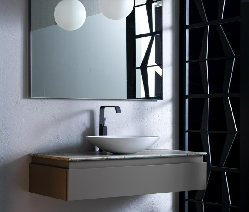 The cabinets included in KS collection derive from the idea of concealed elegance: drawers are made in birch multilayer plywood and don?t need to have any cut-out, since the structure of the washbasin cabinet is equipped with a 7 cm inspectable section on the back which has the function to hide the plumbing space.