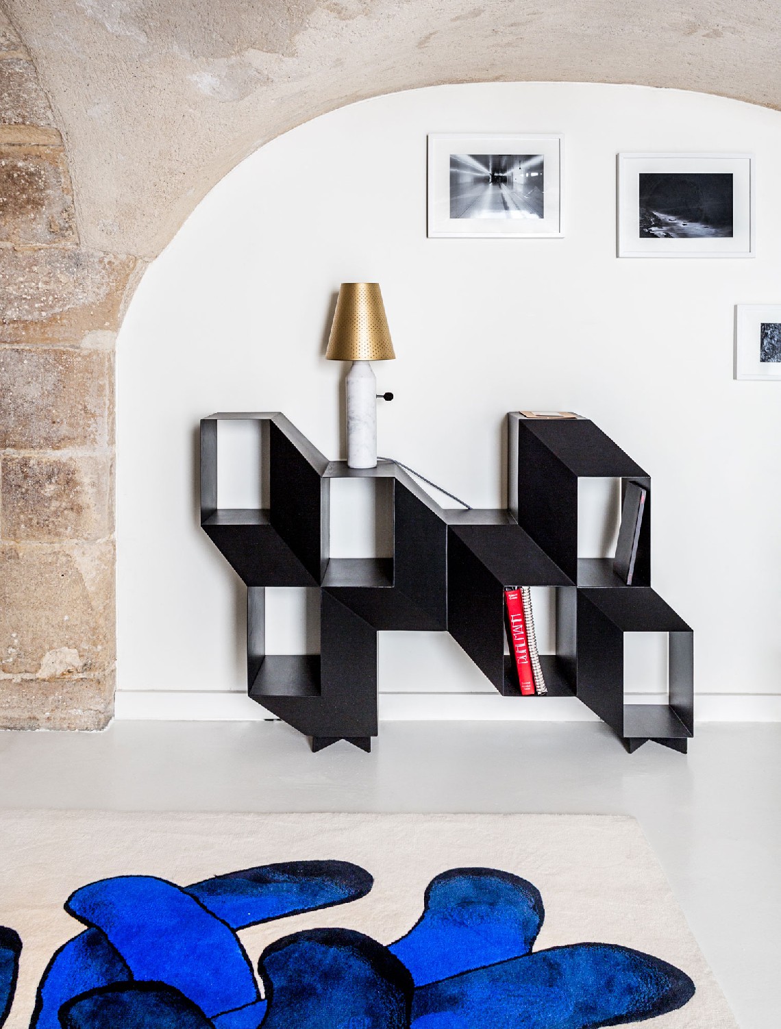 Rocky is a sculptural piece. It can be used as a console or a credenza, but will also accommodate books and objects to become the most graphic display or bookshelf.