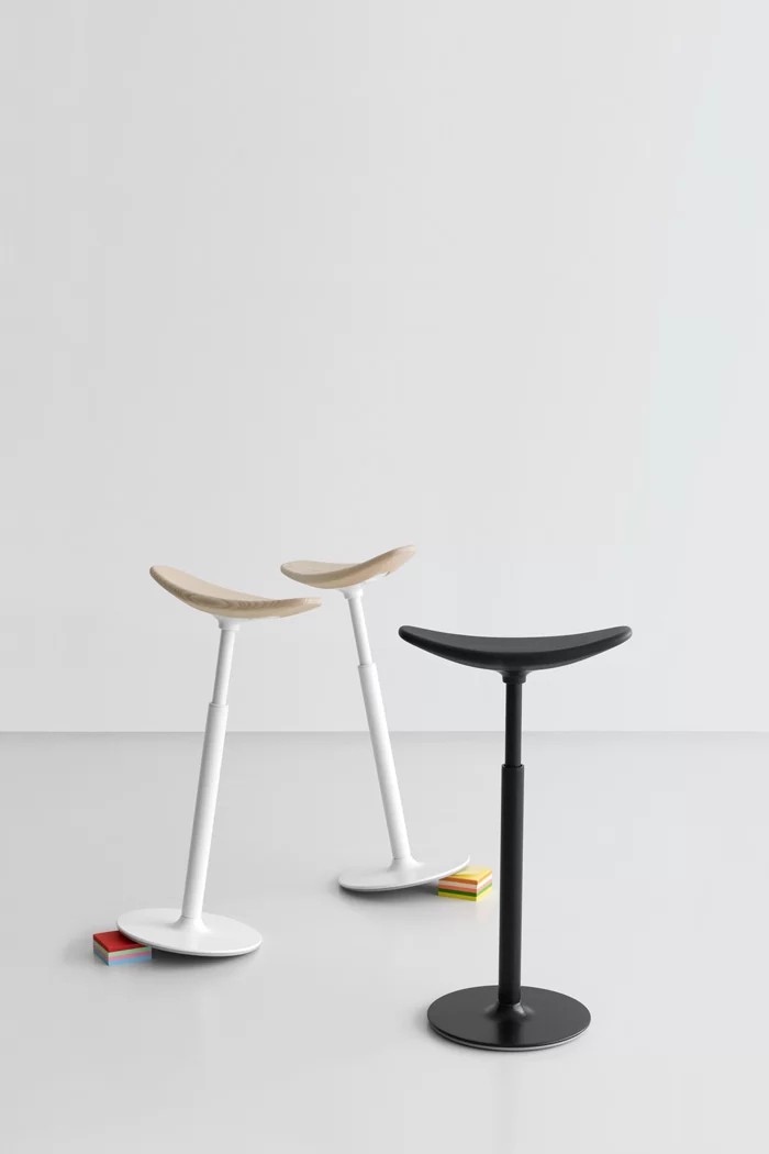 Solo la seduta, che si fissa al muro attraverso una staffa: lo sgabello RYO, perfetto al bar o in spazi dedicati all'attesa, è stato progettato per la mobilità.