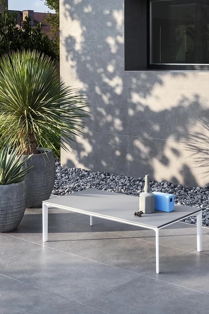 Ha carattere, intensità e leggerezza. Nel suo profilo minimale, ADD tavolino da caffè completa l’eleganza del sistema di sedute ADD e offre il piacere di ritrovarsi outdoor. Il piano è in laminato HPL Fenix? e grazie alle gambe in fusione di alluminio, che formano l’angolo nella versione singola e permettono di unire i telai, le soluzioni compositive soddisfano ogni esigenza.