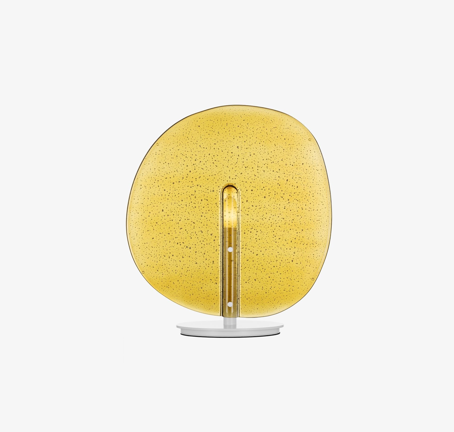 Boris Klimek experimented with the technique of slumped glass, exploring its wide possibilities in terms of glass coloring, glint and internal structure. Made of amorphous glass plates, combined with the metal holder and inserted light source, the resulting objects are reminiscent of lollipops. The Lollipop collection consists of table and stand-alone lamps, as well as pendant lights.