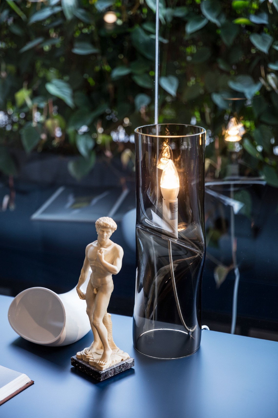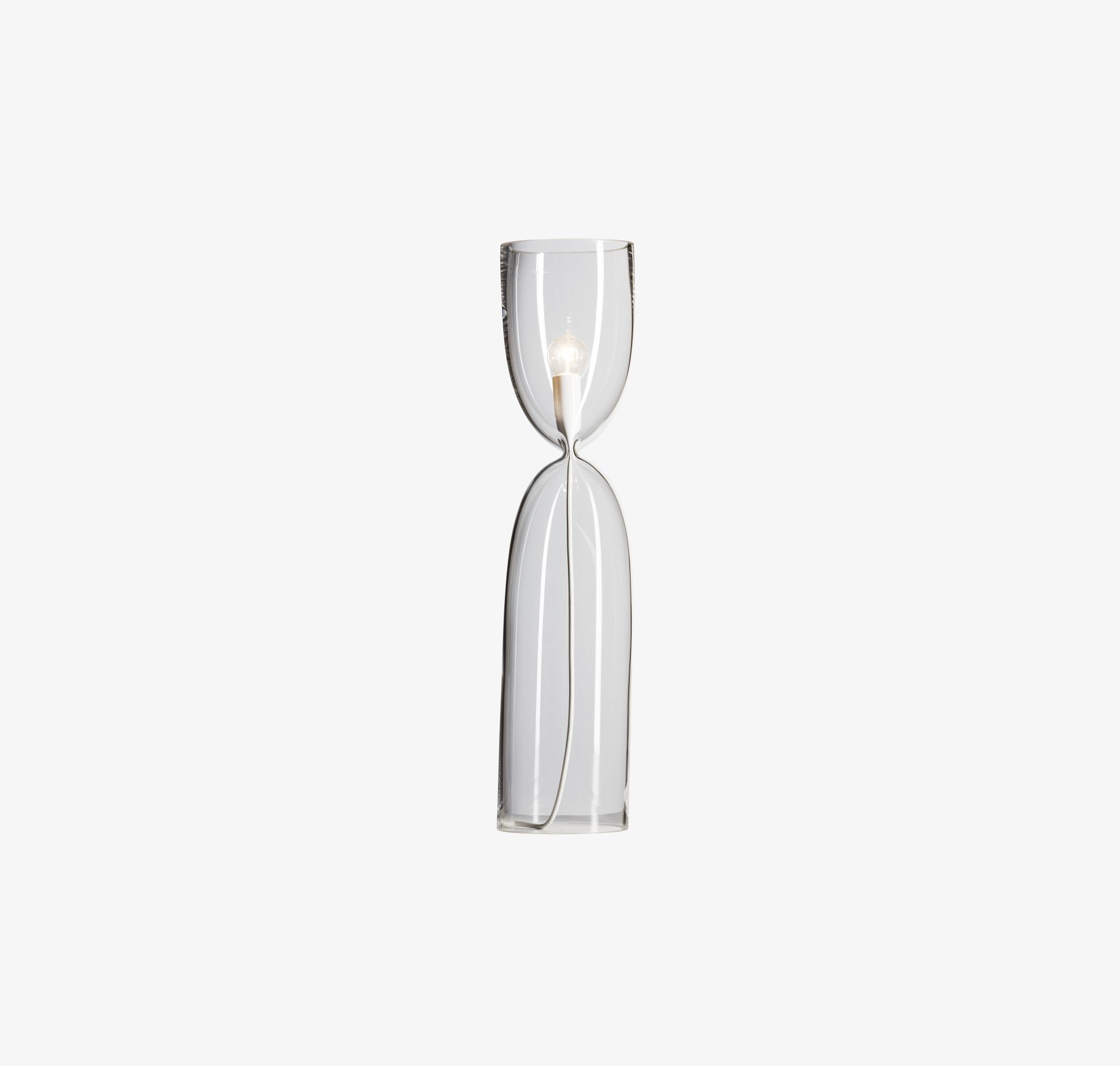 One of influences which shaped modern Japanese design was the Mingei (Folk Crafts) Movement. It emphasised the pursuit of practical beauty as well as the universal appeal of everyday craftwork design. Still present in contamporary Japanese design, these approaches affected also the design of Press Lamp. Here glass tubes are pressed as though they have been pinched, and the light source is ?tted into the narrowed space. It does not rely on a metal form, the compression of the glass produces a soft, organic form and imbues each lamp with a singular appearance.