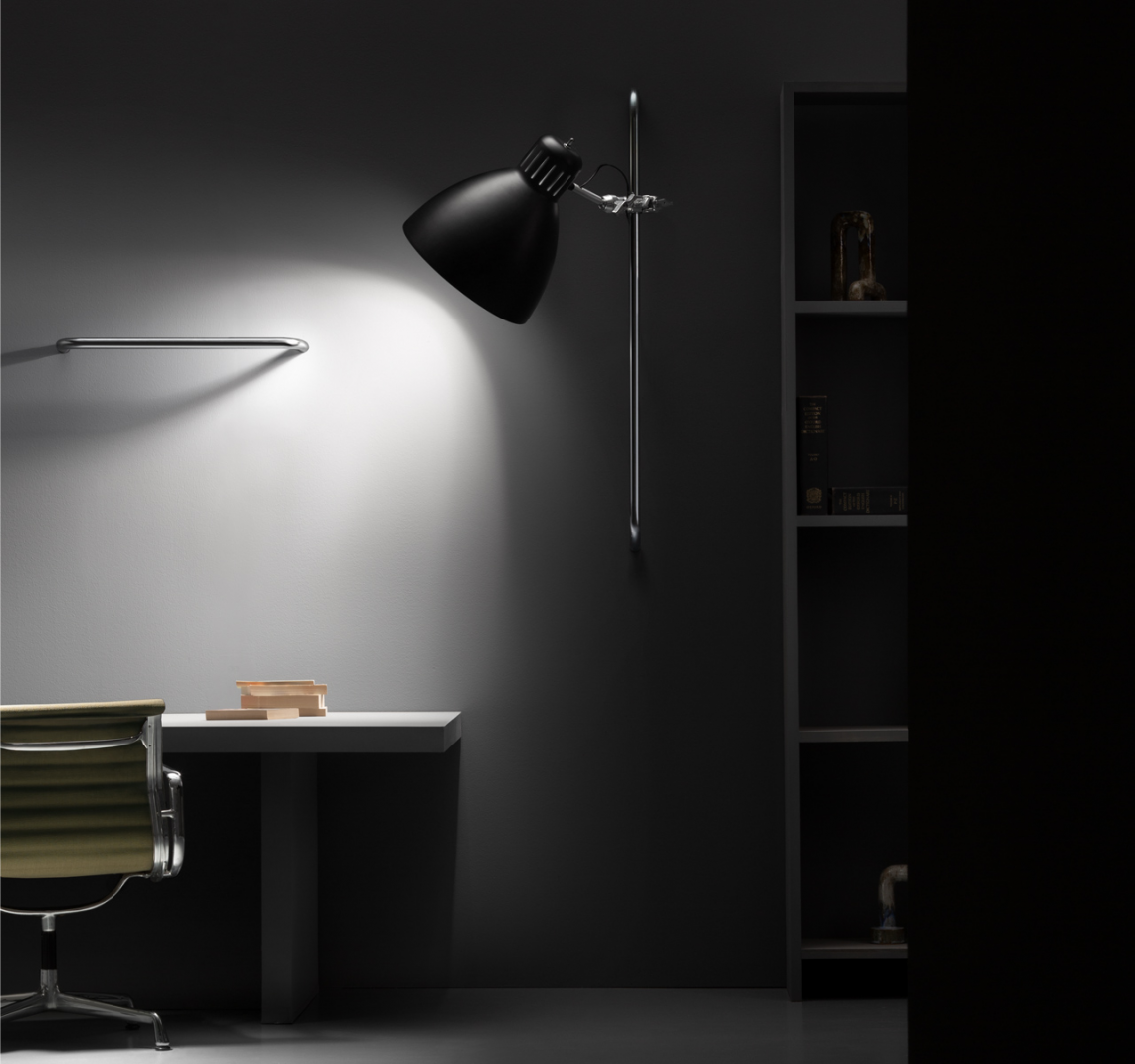 JJ Family’s newest size and typology. Adjust-able “Grip lamp” orientable in all directions. The new JJ BIG – Grip allows different applications (table, floor, wall or ceiling) thanks to the included “Super Clamp” (an attachment that allows you to connect the lamp to a wide range of locations with either round and rectilinear profiles) and using design accessories such as “Autopole” (extendable floor-ceiling tension column in anodized aluminum) and the “Grip Mount” (wall/ceiling attachment in polished anodized aluminum). Matte lacquered aluminum diffuser available in white, black, amaranth red, mica blue, sablé grey and rust brown. Interior in white lacquer. Polished anodized aluminum structure. Dimmable LED light source (user replaceable). Dimmer on cord (push-dim).