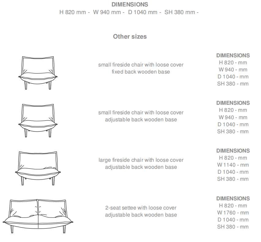 Calin is like a giant pillow: soft, yet structured to support correctly for years to come, with a loose cover which may be removed for dry cleaning.