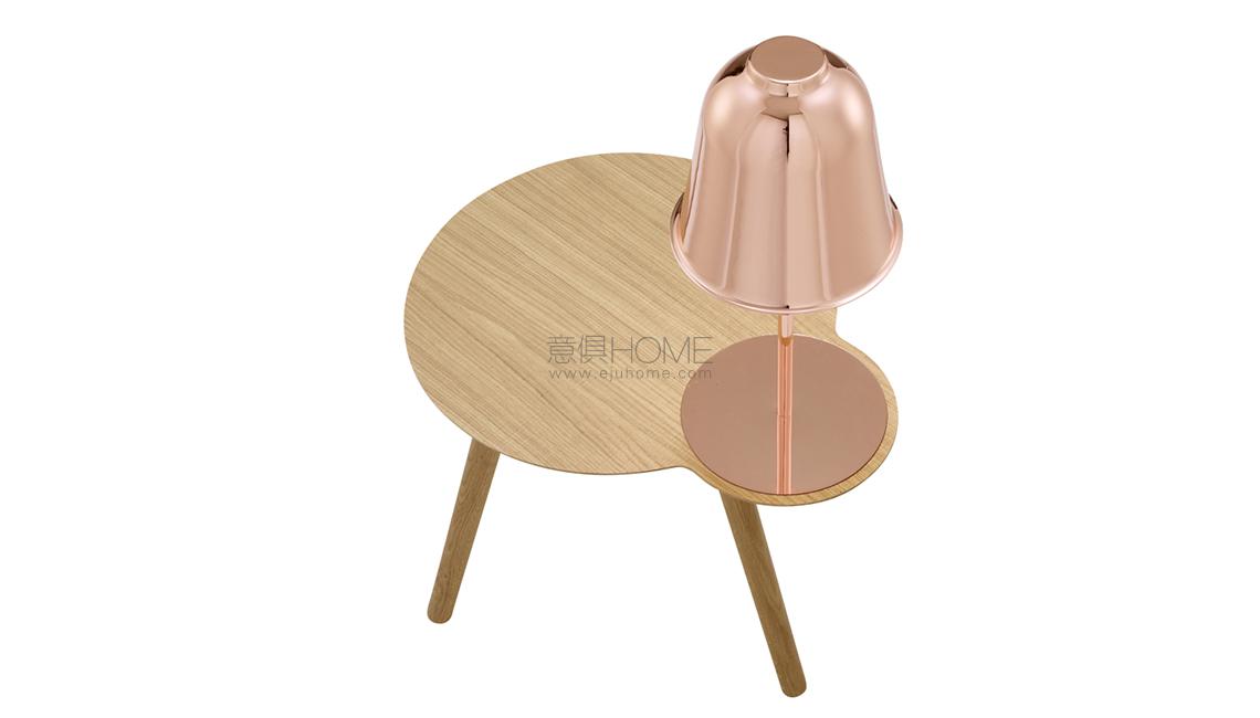 Illuminated pedestal table with top in sawn- effect natural oak veneer. Reading light with copper-plated shade mounted on a copper- plated metal stem. A decorative copper disc is set flush into the top directly beneath the shade. Beige textile cable. Integral switch on fitting. Supplied with 1 x 12 W LED bulb. Colour temperature 2,700 K (warm white). THIS LIGHT CONTAINS INTEGRAL LED LIGHTS OF ENERGY CLASS A+.