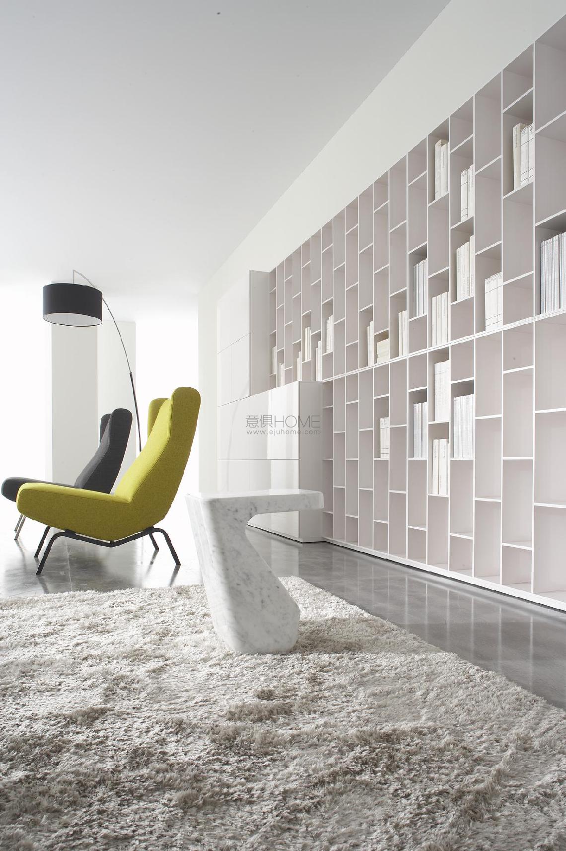 Occasional table in grey-veined white Carrara marble, hewn from one piece, polished then finished and protected with a water-repellent treatment.