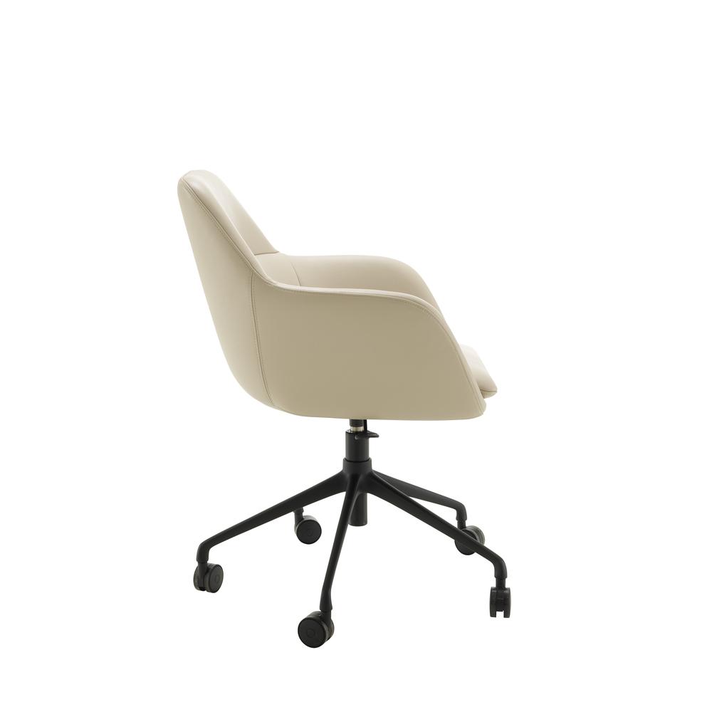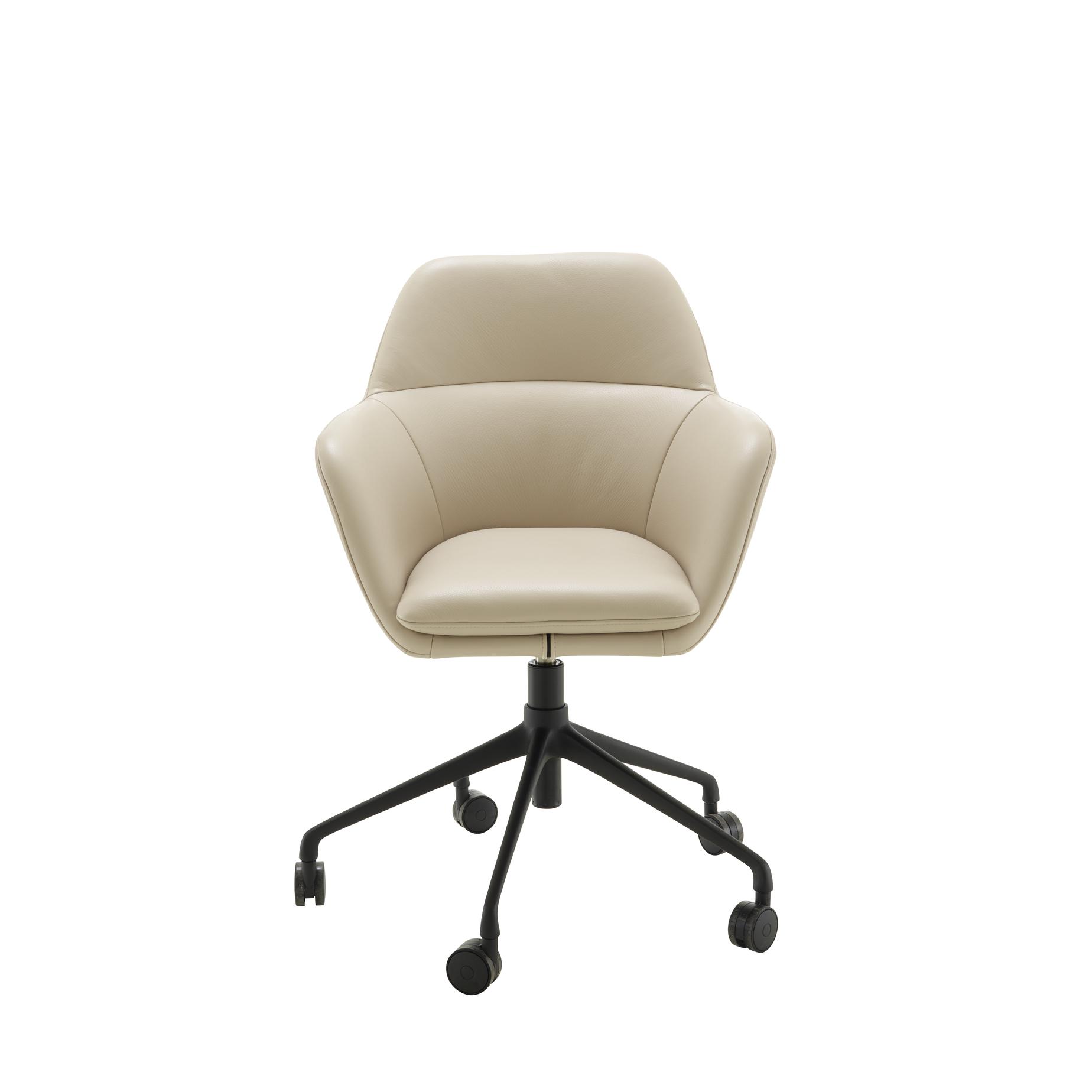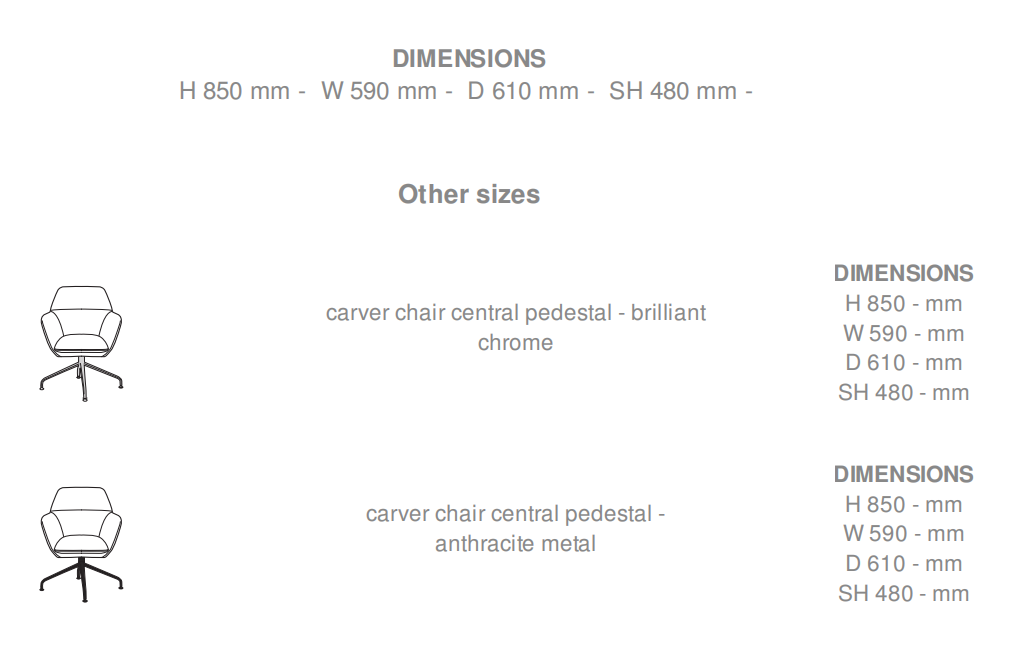 - 1 rotating 4-branch base without castors, finished in brilliant-chromed steel. - 1 rotating 4-branch base without castors, in grained anthracite-finish steel. - 1 rotating, height-adjustable 5-branch base on castors, in polished aluminium. - 1 rotating, height-adjustable 5-branch base on castors, in grained black-finish aluminium. For both chairs and bridges equipped with a 5- branch base on castors, the minimum and maximum heights and seat heights are indicated beneath each item.