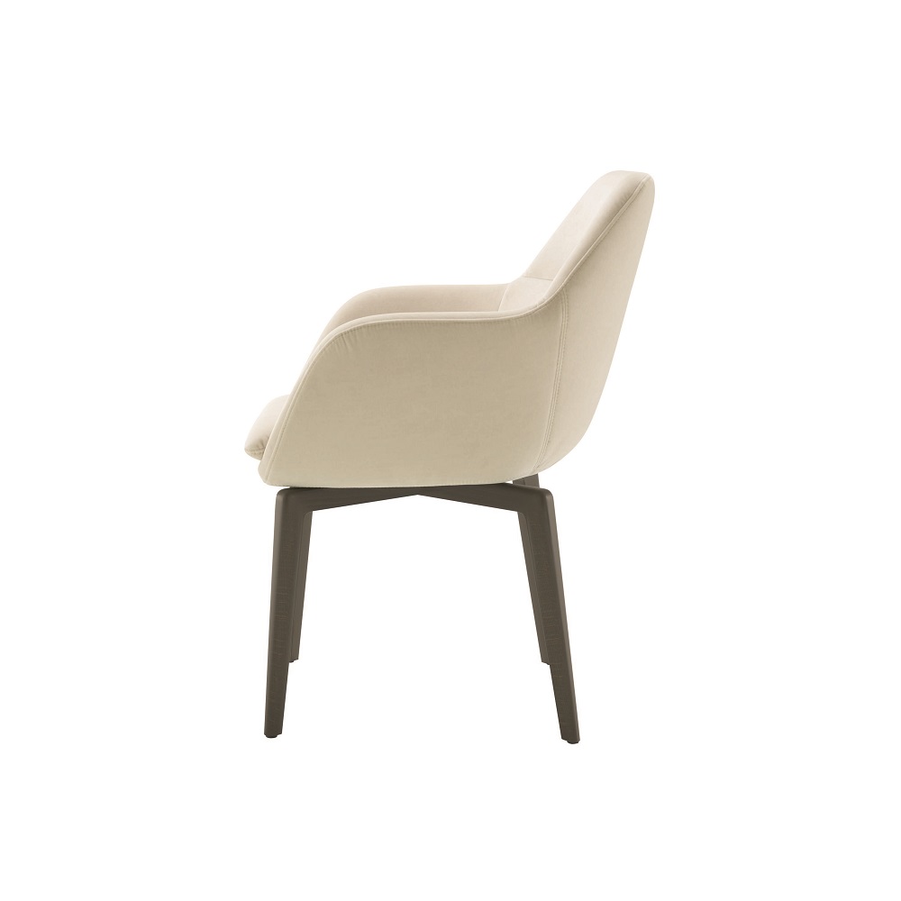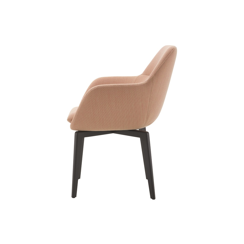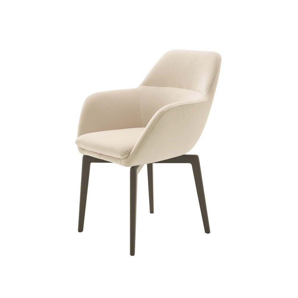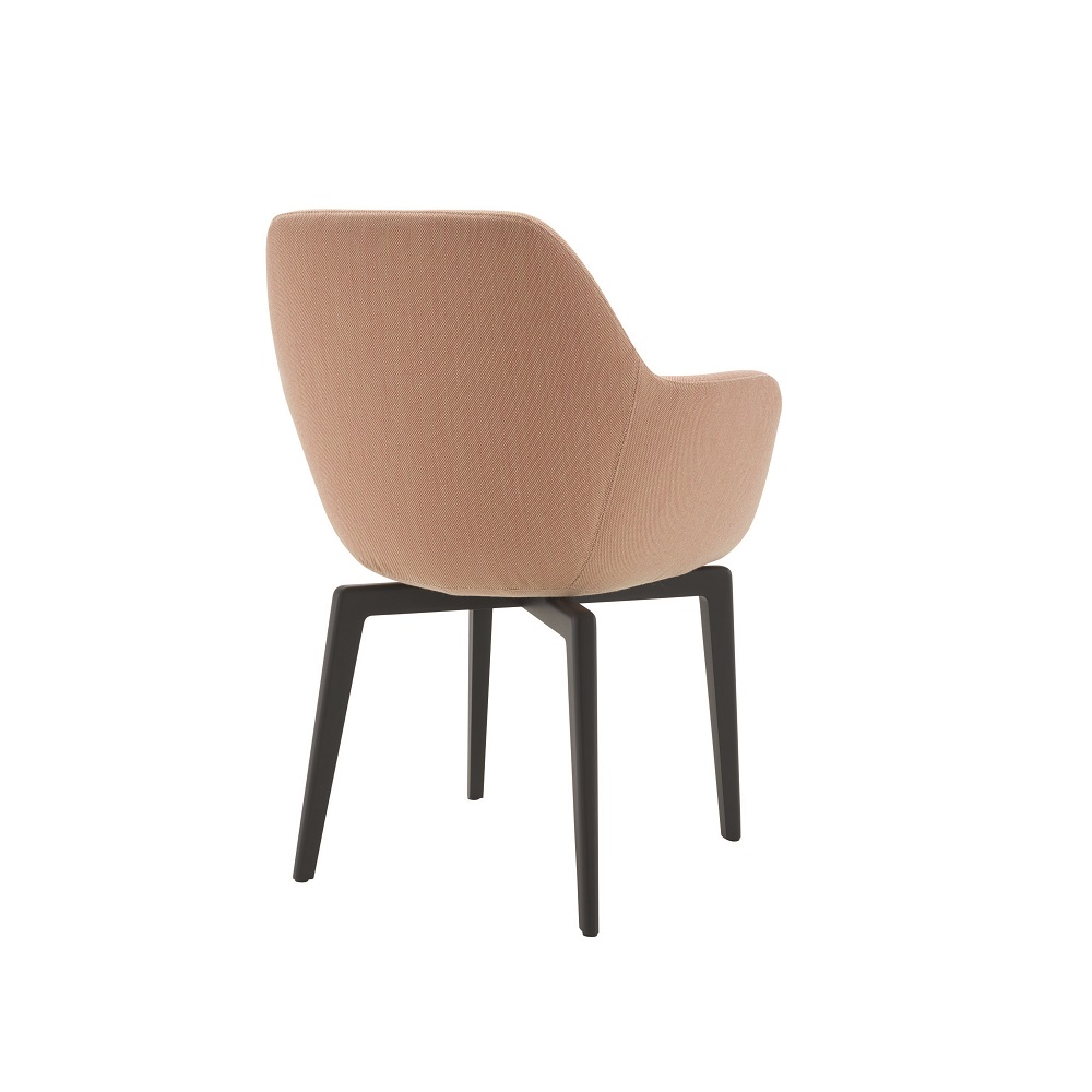 腰靠可繞著座位旋轉,舒適地包裹住背部,這就是我設計這把座椅的謹慎的意圖,所有曲線都被抹去了,以便更 好地與桌子搭配。提供不同的支撐底座以適用不同場景。Ligne Roset系列的所有布料和皮革都可以作為布罩。” 瑪麗·克里斯汀·多納(Marie Christine Dorner)。