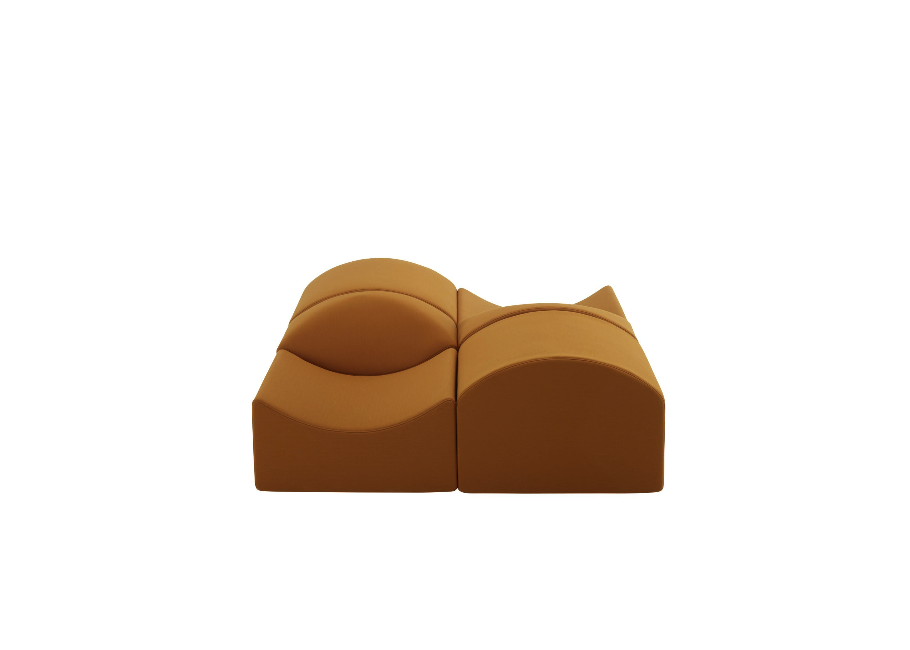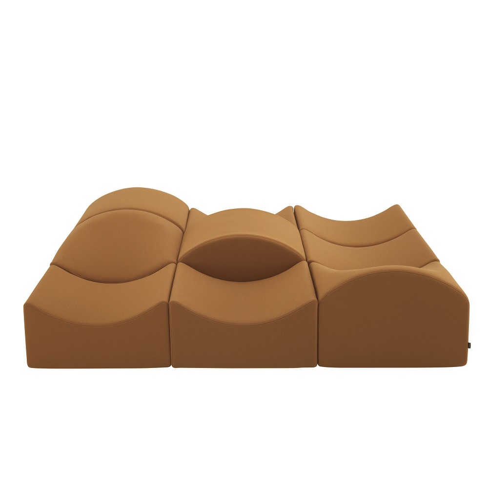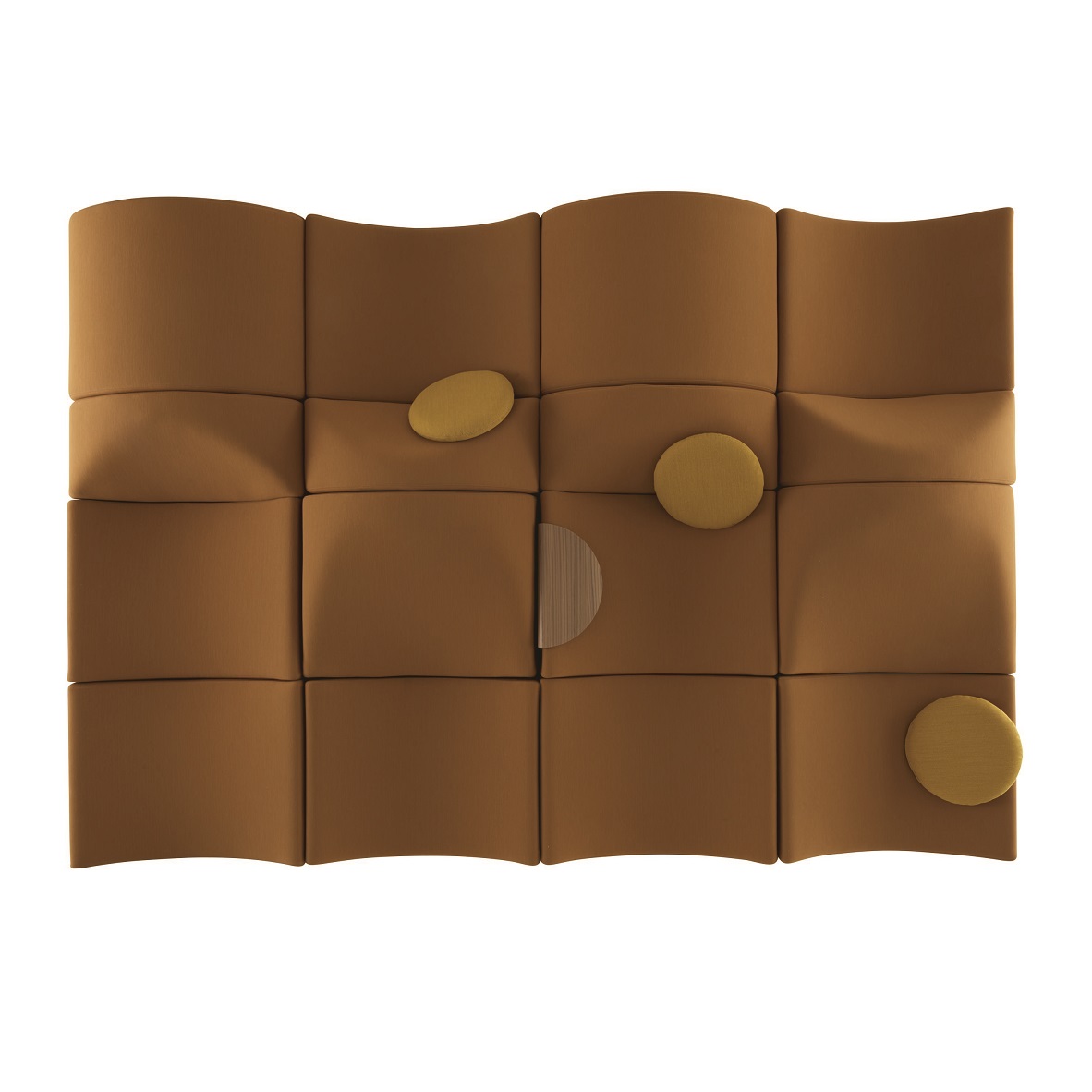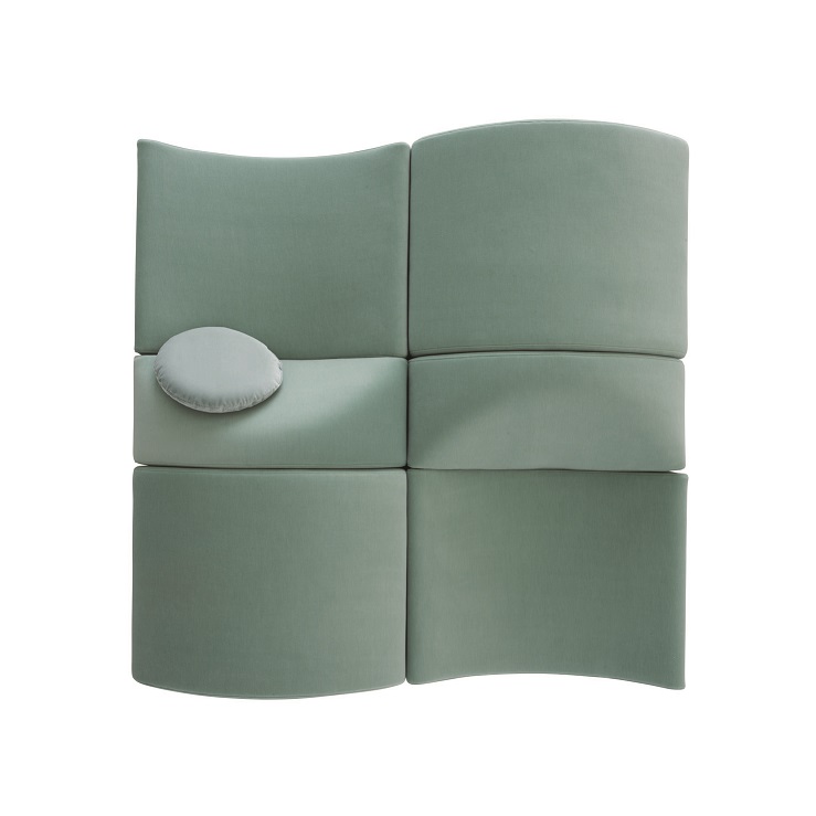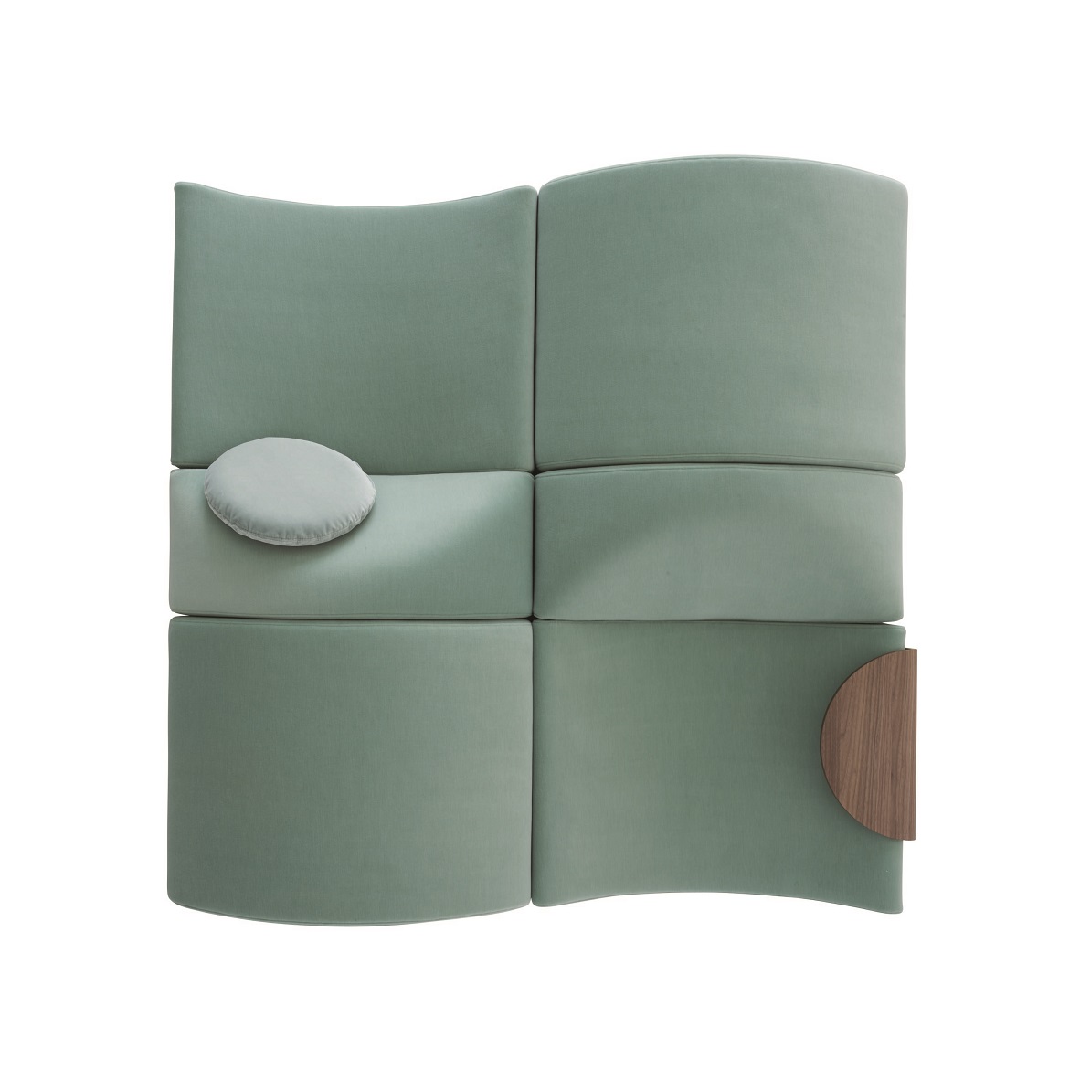 分解成幾個元件后,阿斯馬拉組合物可以不斷地重新排列。座椅由五個不同的模塊組成:凸形,凹形,小靠背, 大靠背,半圓形桌子。最常見的組合包括2個凸形,6個凹形,3個小靠背和1個大靠背。這樣就可以布置”孤島“或“ 經(jīng)典”造型。