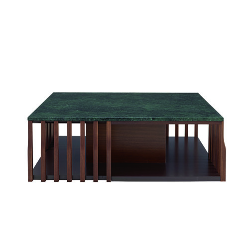 餐邊柜三間式有兩層,一層為單獨空間,另一層隔斷成兩個空間,餐邊柜四間式,雙層均隔斷成兩個空間。 餐邊柜有1個內部擱板,客廳家具有3個擱板。 茶幾十足精致。它有28個欄桿,每根欄桿底部寬,上部窄,以美國實心胡桃木制成,深色,涂清漆。每根欄桿都 由一個不可見的裝置固定,該裝置將其與地板連接,確保達到預期的堅固性。在頂層平板下方水平狀的配接板條 連接并固定了欄桿,它起始于最邊緣的欄桿,并向外連接其他欄桿。下部空間似乎沒有任何分隔,只有中央正方形物體鞏固了整體,加上67千克沉重的大理石托盤的重量,使整體 重達121千克——從外觀上卻看不出這個分量。中心覆蓋著深色胡桃木貼面與下部托盤的巧克力色漆形成鮮明對 比。它安裝在可調式地板墊 上,將其抬離地面20毫米。