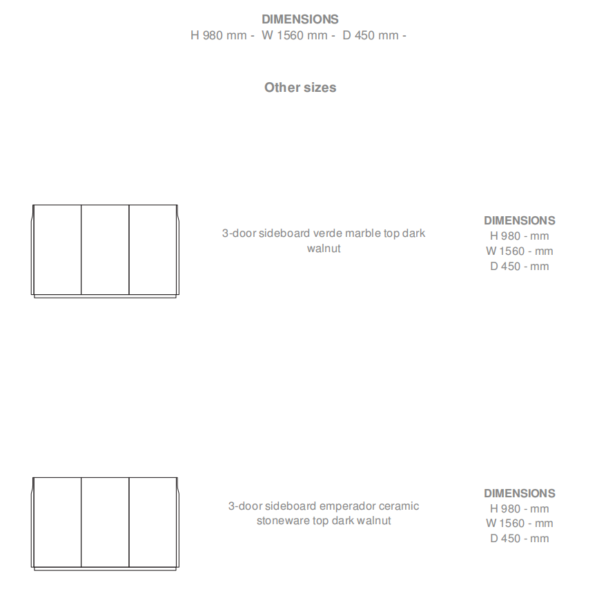 餐邊柜三間式 – 寬度 1554 / 高度 980 / 深度 407 餐邊柜四間式 – 寬度 2054 / 高度 980 / 深度 407 客廳家具 – 寬度 960 / 高度 1530 / 深度 407 茶幾 – 寬度 1133 / 高度 376砂巖或390砂巖 / 深度 1133