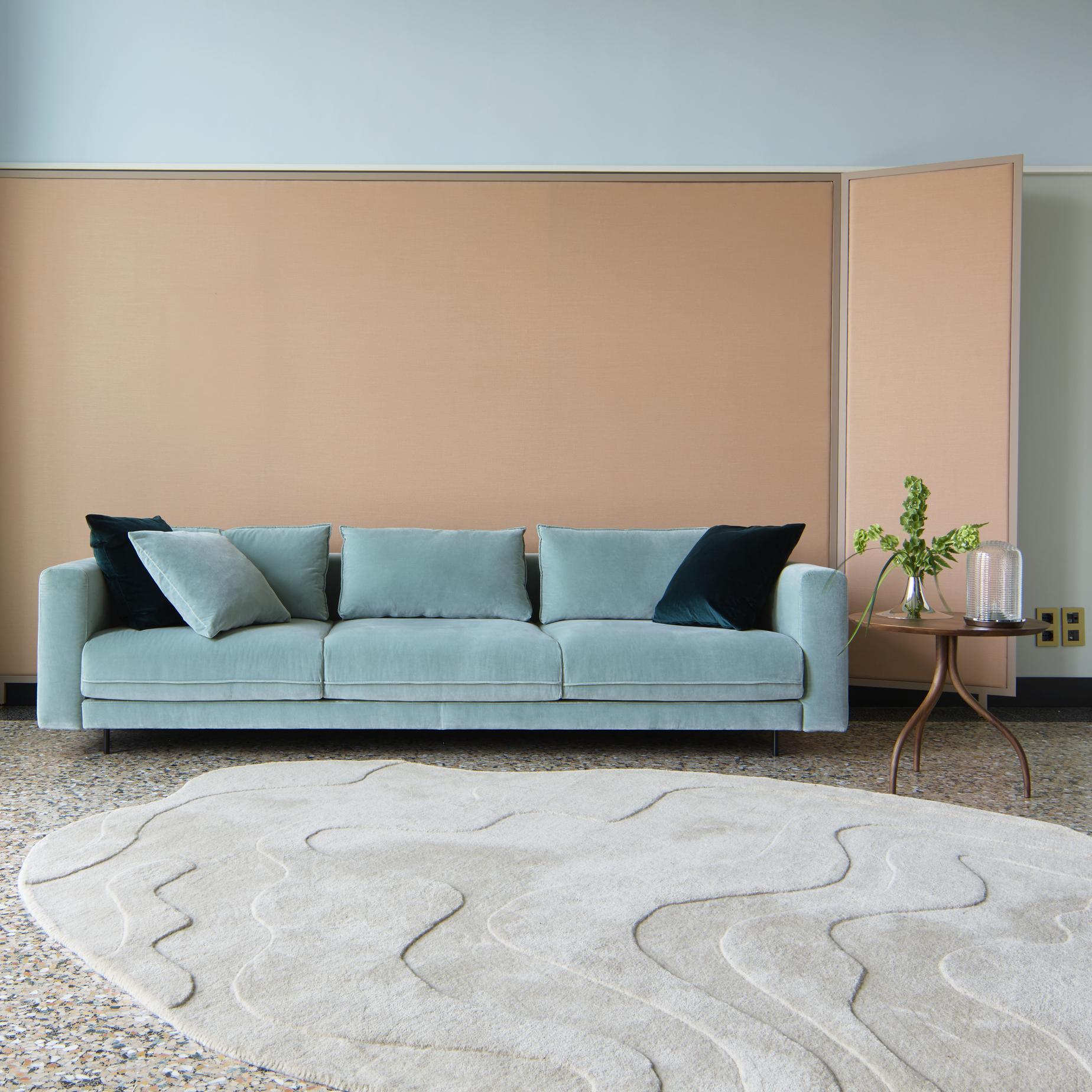 Enki is the first seating Evangelos Vasileiou has designed for Ligne Roset. Intended to respond to multiple requirements, its pure, elegant lines lend themselves to both stand-alone seating (settees, armchair, footstool) and corner compositions, with a range of 18 items in total. To make it possible to tailor both looks and comfort, there is a choice between 2 leg heights (10 cm or 13 cm), giving a seat height of either 41 cm or 44 cm, and a choice of 2 heights for the back cushions (high version 51 cm; low version 40 cm).