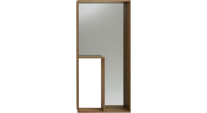 Mirror with MDF frame finished in natural varnished American walnut veneer with grey mirrored glass. May be fixed to a wall either vertically or horizontally. The mirror is supplied with 2 non-slip adhesive pads should the customer wish to place it on the ground.