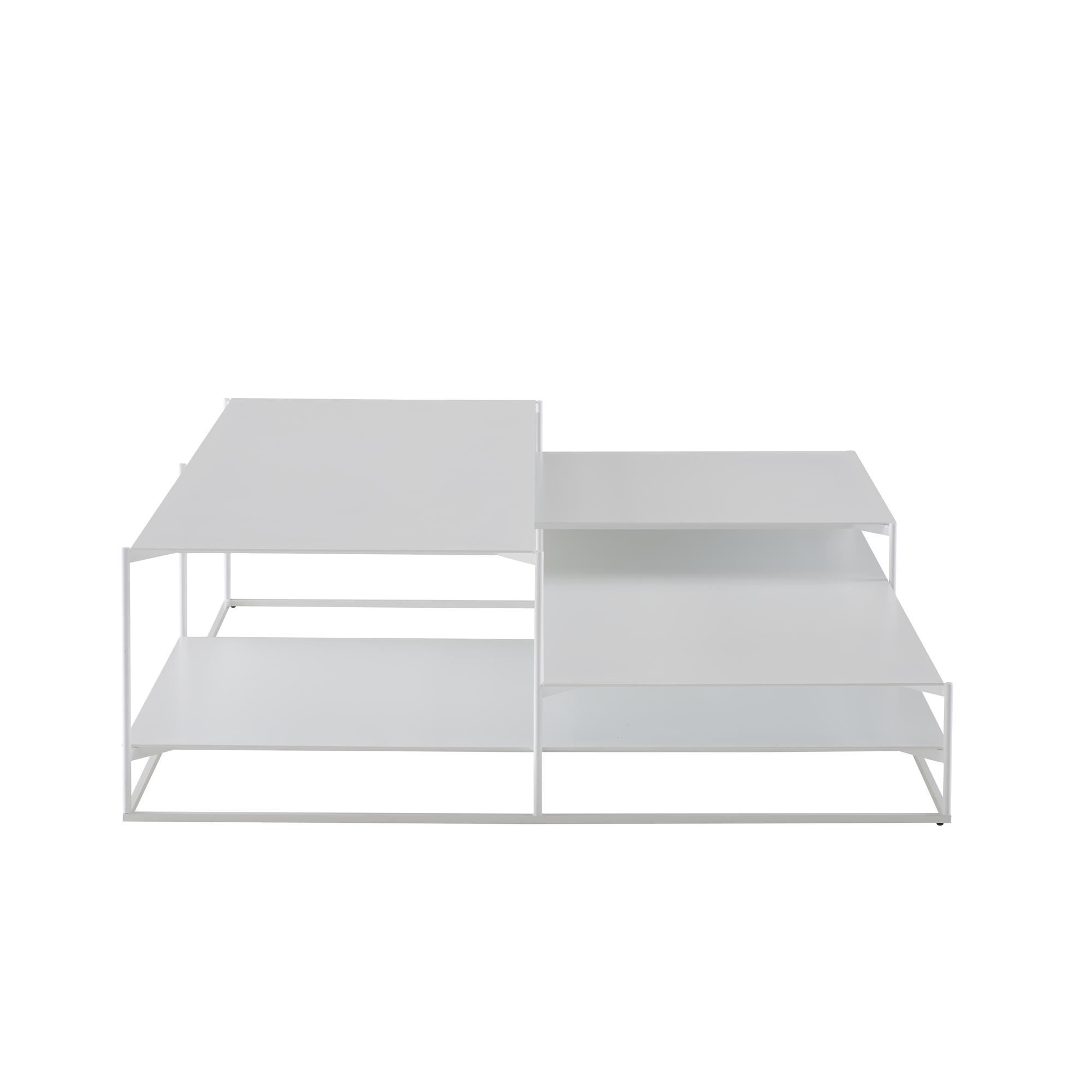 Lowands is a low table which is at once decorative and functional. Its four surfaces are positioned at various heights in a swirling fashion, which creates a real graphic melody and dynamic rhythm. Its storage space is perfectly optimized in a way which is as smart as it is elegant, with no concession in terms of the finesse and visual lightness which characterize it, underpinned by its single-material treatment.