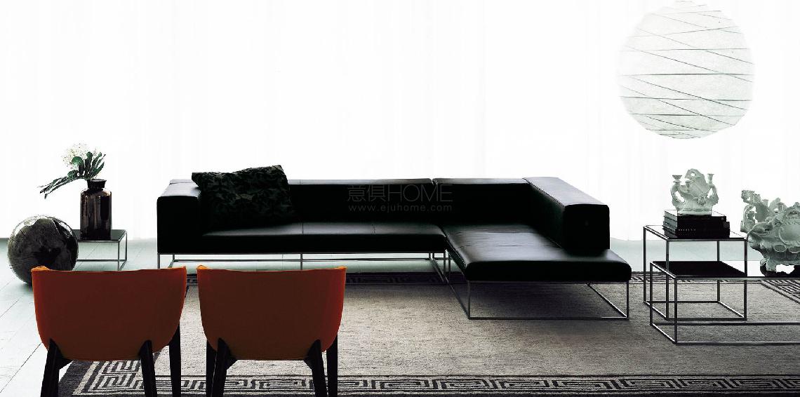 Elements with different sizes and armchair with armrest and back structure in double-panelled poplar and pine with padding in differentiated density polyurethane foam. Covering in needle punched, resinated, nonwoven polyester fibre, bonded onto a polyamide velveteen backing. Under-seat panel in self-supporting decorative HPL, plastic laminate panel, decorated on both sides. Seat cushions with preformed, differentiated density polyurethane foam, covered with acrylic fibre layers. Base in AISI 304 stainless steel square-section tube, with matt satin-finish. Fabric or leather upholstery, both fully removable by zippers and Velcro fastenings. Seat depth 67cm. Ile has undergone and passed the seat and back static load and fatigue tests (EN 1728:2000), with issue of relative certificate by CATAS?.