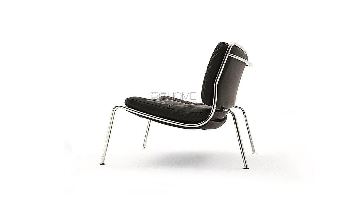 Armchair and chaise longue available for indoor and outdoor. Padded armchair Indoor: supporting frame in steel with chromed-plated finish or epoxy powder coating gunmetal color, burnish color, RAL-K7 9010 white or 9017 black and, on request, AISI 316 stainless steel with matt satin-finish. Metal chassis embedded in coldexpanded polyurethane foam with covering in 100% polyether thermally bonded onto a polyamide velveteen backing. Back and seat cushion with performed polyurethane foam structure, covered with acrylic fibre layers. Quilted fabric or leather upholstery. The fabric version only is fully removable by zippers and Velcro fastenings after unscrewing the chassis from the supporting frame. Outdoor: supporting frame in Stainless Steel AISI 316 with matt satin finish or Stainless Steel 316 with epoxy polyester powder coating gunmetal color, burnish color, RAL-K7 9010 white or RAL-K7 9017 black. Backrest and Seat metal chassis embedded in cold- expanded polyurethane foam covered with “IDROSPALM”, a heat- sealed waterproof fabric protection. Back and seat padding with preformed open-cell structure polyurethane foam DRYFEEL S and fibre for outdoor, coated with heat- sealed waterproof fabric protection. Upholstery, with outdoor fabrics only, always quilted and fully removable by zippers and Velcro fastenings after unscrewing the chassis from the supporting frame. Woven armchair and chaise longue. Indoor: supporting frame in AISI 316 stainless steel with matt satin-finish, steel with chromed-plated finish or epoxy powder coating gunmetal color, burnish color, RAL-K7 9010 white and RAL –K7 9017 black. Woven with hide, hempen rope, leather Scooby (braided leather trim), PVC profile or in cellulose cord in the colours available in the collection. Supporting cushions in polyurethane foam covered with acrylic fibre layers and fabric or leather upholstery. Outdoor: supporting frame in AISI 316 stainless steel with matt satin-finish or epoxy powder coating gunmetal color, burnish color, RAL-K7 9010 white and RAL-K7 9017 black. Woven with PVC profile, in the colours available in the collection. Supporting cushions in open-cell structure polyurethane foam for outdoor, coated with fiber for outdoor. Upholstery with outdoor fabrics only. Cushions’ upholstery, in both versions, fully removable by zippers. Seat depth 51-60cm. The supporting frame of armchair Frog in stainless Steel AISI 316, has undergone and passed the corrosion test (UNI ISO 9227:93) with issue of relative certificate by CATAS?.