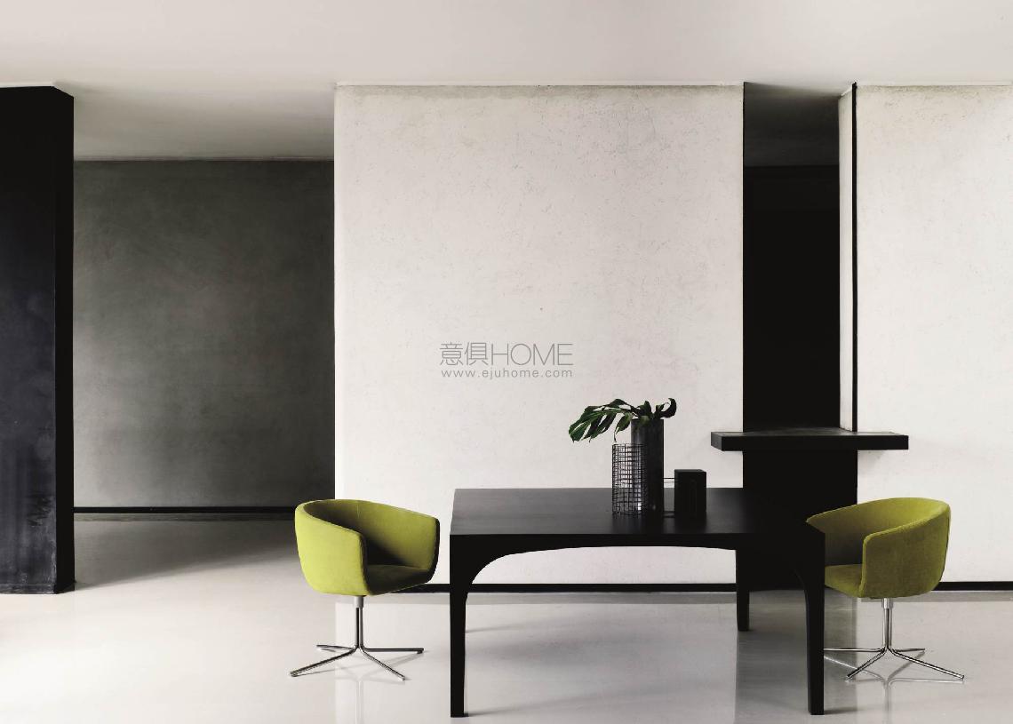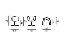 Small armchair with one-piece frame with steel insert and flexible, cold-expanded polyurethane foam padding and seat padded with polyurethane foam. Covering in needle punched, resinated, non-woven polyester fibre, bonded onto a polyamide velveeten backing. Swiveling base in shiny chromed finish steel or in steel lacquered in gunmetal grey colour and floor support secured by white or black PVC tips. Fabric or leather upholstery; the fabric version only is fully removable by zippers and velcro fastenings. Seat depth 41cm
