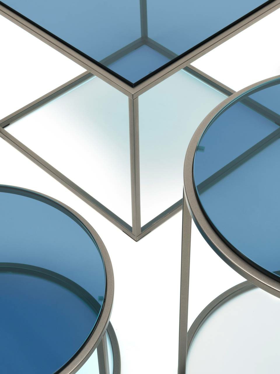 Table in different heights and sizes, with 10 mm thick top, available for indoor and outdoor. Indoor version: base in AISI 304 Stainless Steel square-section tube, with matt satin-finishing or steel with epoxy powder coating RAL-K7 9010 white, RAL-K7 9017 black, gunmetal gray colour or burnish colour. Top available in HPL, decorated on both sides, white or black colour, clear glass, back-painted black glass, back-painted white extraclear glass, smoked grey glass or blue-tinted glass. Outdoor version: base in AISI 316 Stainless Steel square-section tube, with matt satin-finishing or in AISI 316 Stainless Steel with epoxy powder coating RAL-K7 9010 white, RAL-K7 9017 black, gunmetal colour or burnish colour. Top available in HPL, decorated on both sides, white or black colour,clear glass, smoked grey glass or blue-tinted glass.
