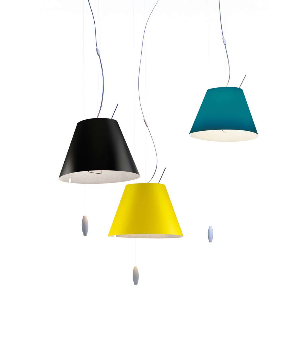 The colored polycarbonate shade adds personality to any setting. The control rod is positioned close to the light source. A counterweight provides easy height adjustment.
