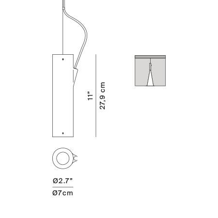 Ceiling lights produced in two diameters (70 mm and 134 mm) and various lengths. The recessed positioning of the light source increases the angle of shading and lighting comfort.